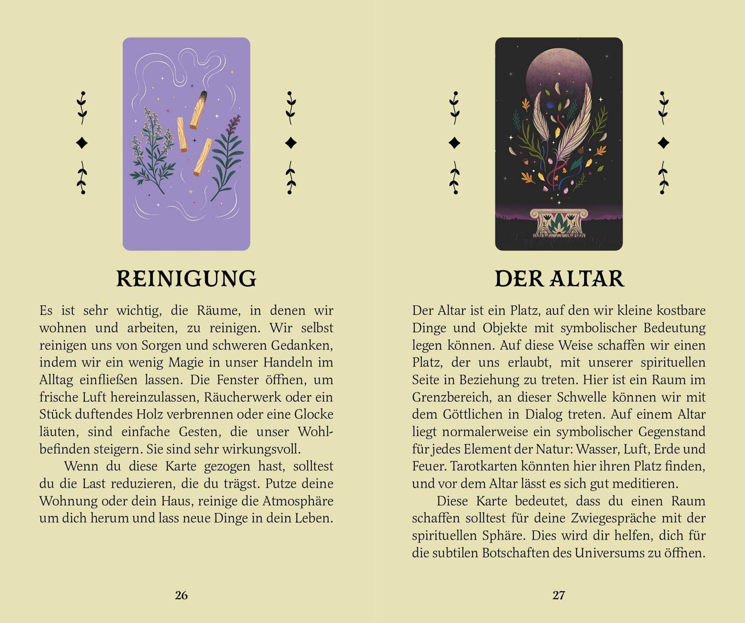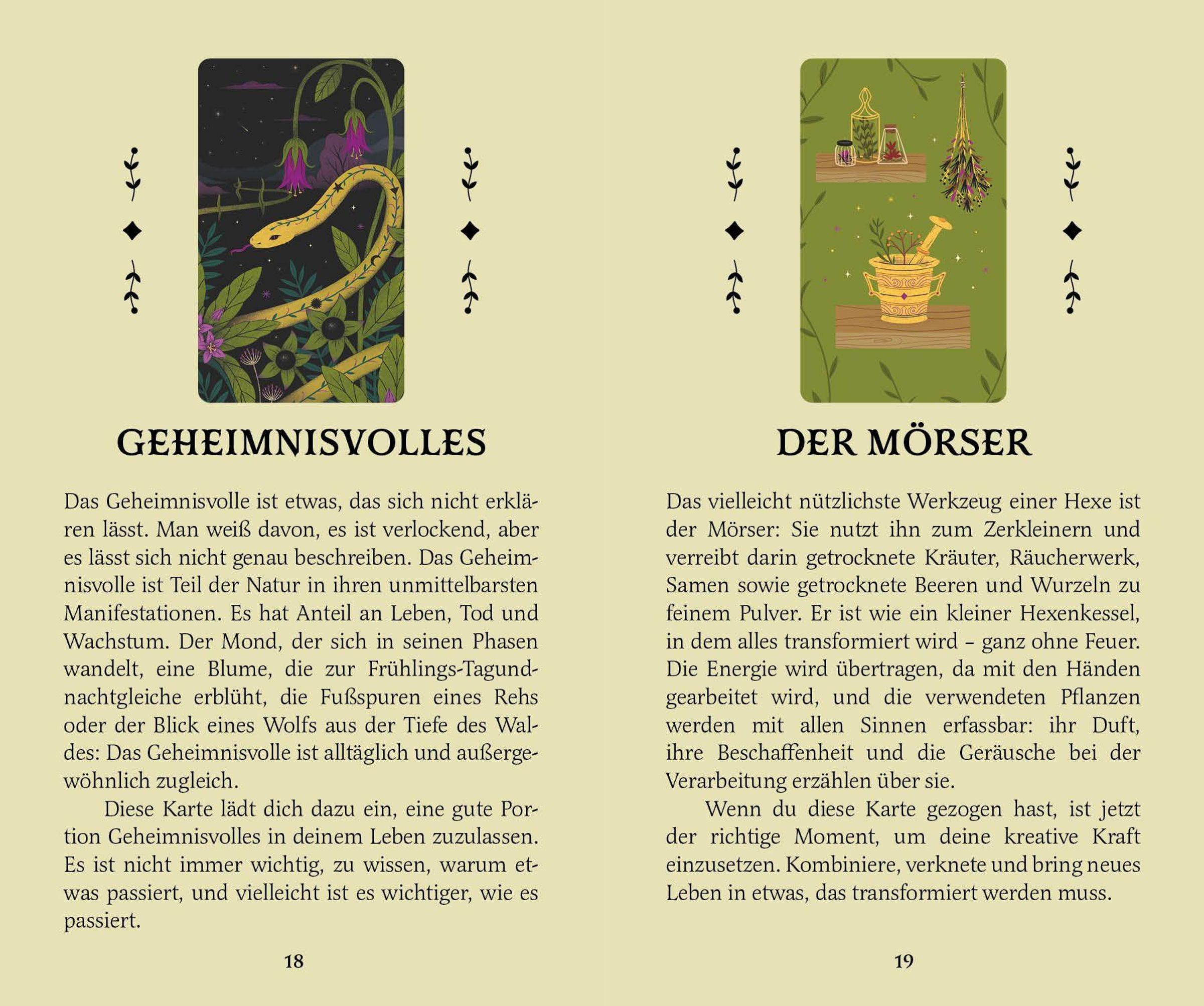 Natur, Pflanzen, Magie, Weisheit und Intuition sind seit Jahrhunderten miteinander verbunden -über alle Kulturen hinweg. Dieses Orakelkartendeck bietet uns Gelegenheiten, die individuelle Verbindung zur Natur in uns wiederzuerwecken, unsere innere Weisheit wachzurufen und die Praktiken sowie das Wissen der grünen Magie mit allen Sinnen zu erleben.