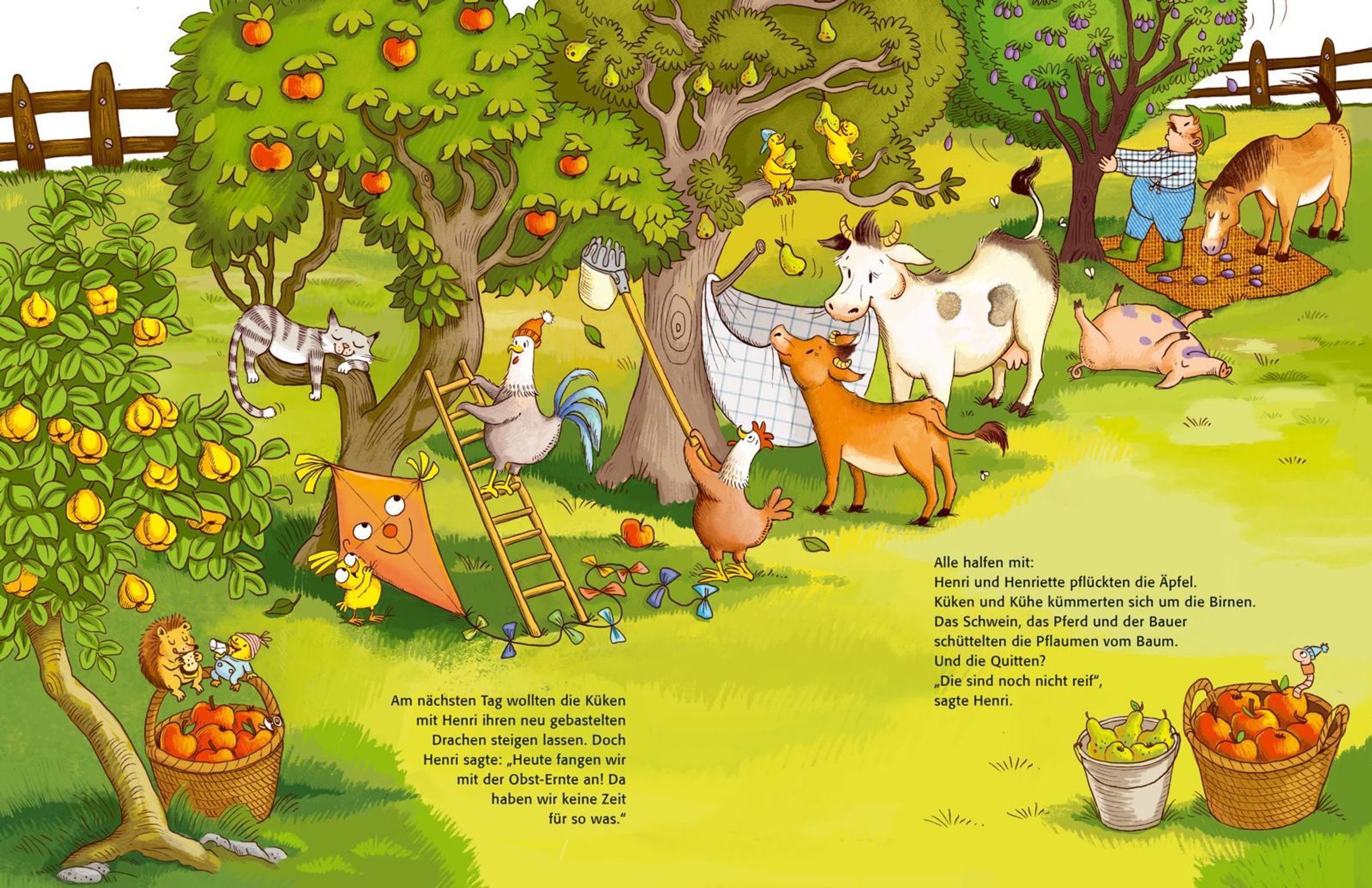 Henri, Henriette und ihre vier Küken nehmen kleine Leser: innen mit auf eine fröhliche Reise durch das bunte Bauernhofleben. Ob beim ersten Treffen, auf abenteuerlichen Ferien, bei der spannenden Eiersuche oder in der gemütlichen Herbstzeit - hier erleben Kinder, wie wichtig Zusammenhalt, Neugier und Fantasie sind. Die liebevoll erzählten und illustrierten Geschichten spiegeln den Alltag auf dem Bauernhof wider und bieten zahlreiche Gesprächsanlässe für Eltern und Kinder.