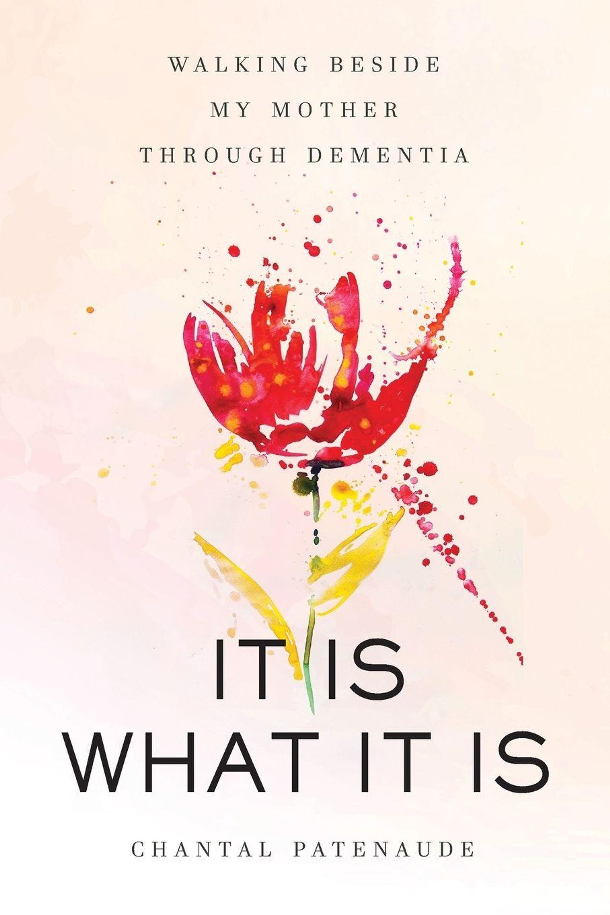 „Walking Beside My Mother Through Dementia. It Is What It Is. Chantal Patenaude.“ Illustration einer rot-gelben Blume., Buch