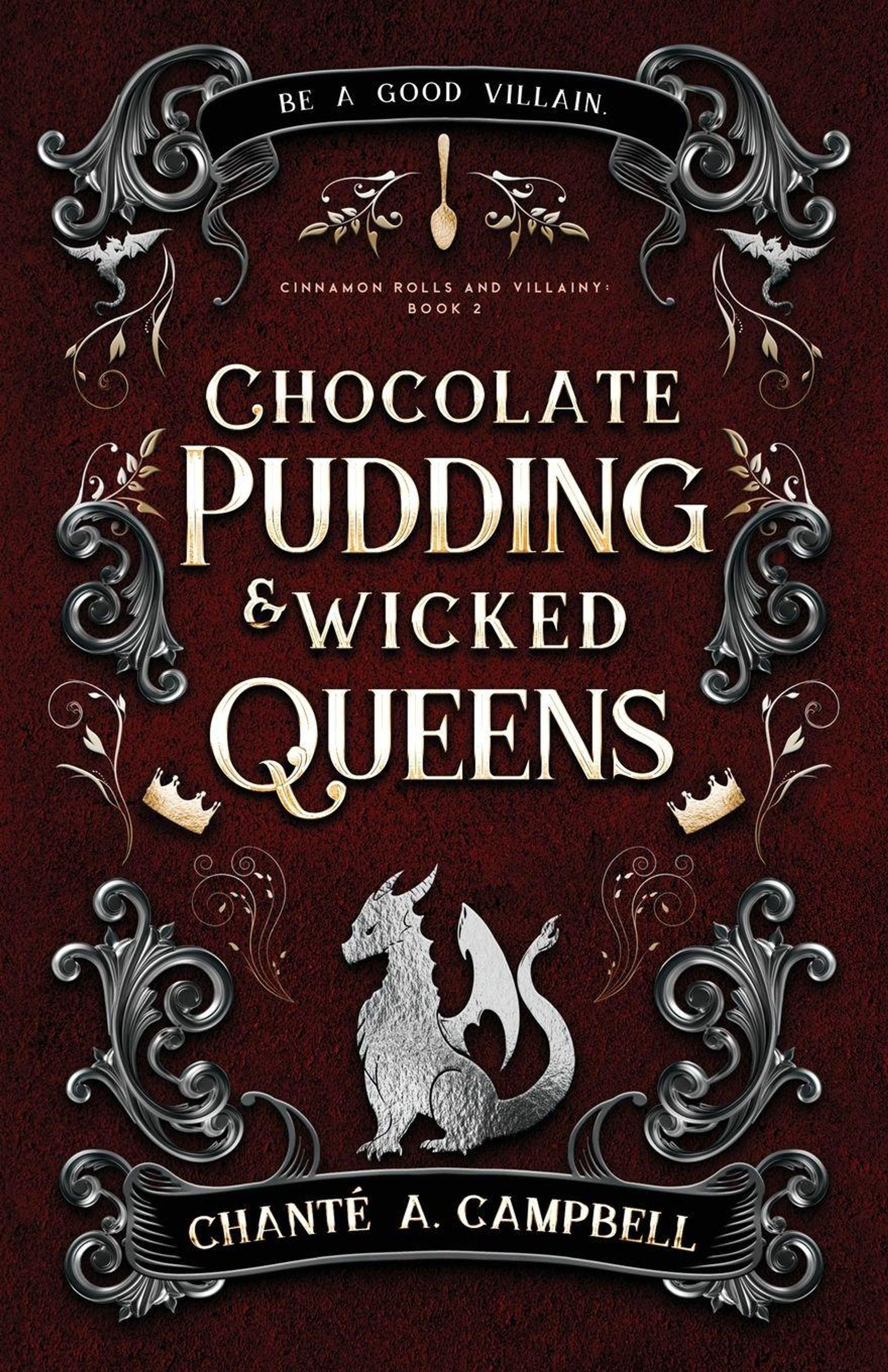 CHOCOLATE PUDDING AND WICKED QUEENS is the second book in the Cinnamon Rolls and Villainy series: an enemies to lovers fantasy romance that follows a sweet cinnamon roll baker, a morally gray villainess, and their found family as they seek to change the fate of their world.
