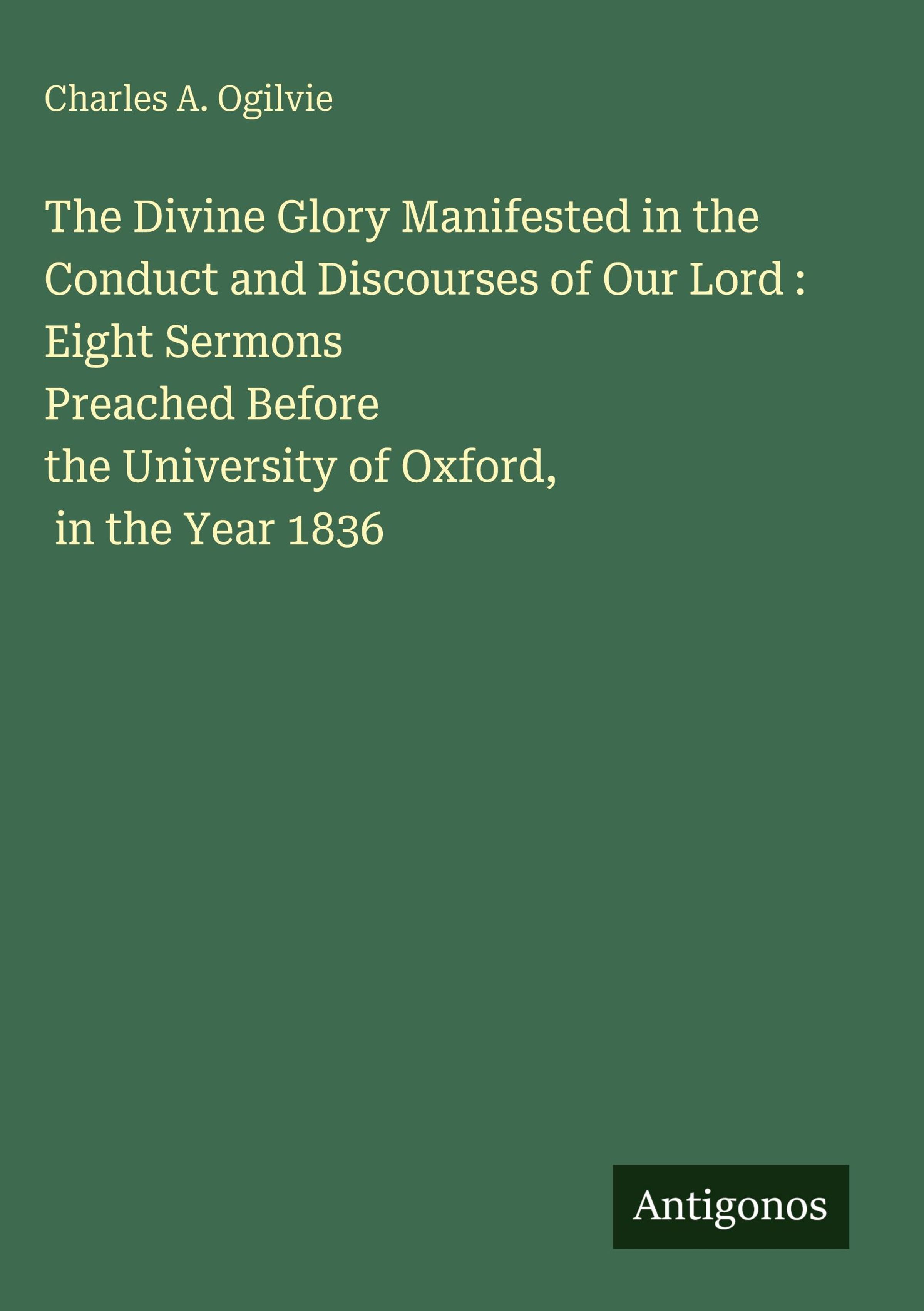 Charles A. Ogilvie: The Divine Glory Manifested in the Conduct and Discourses of Our Lord : Eight Sermons..., Gebunden