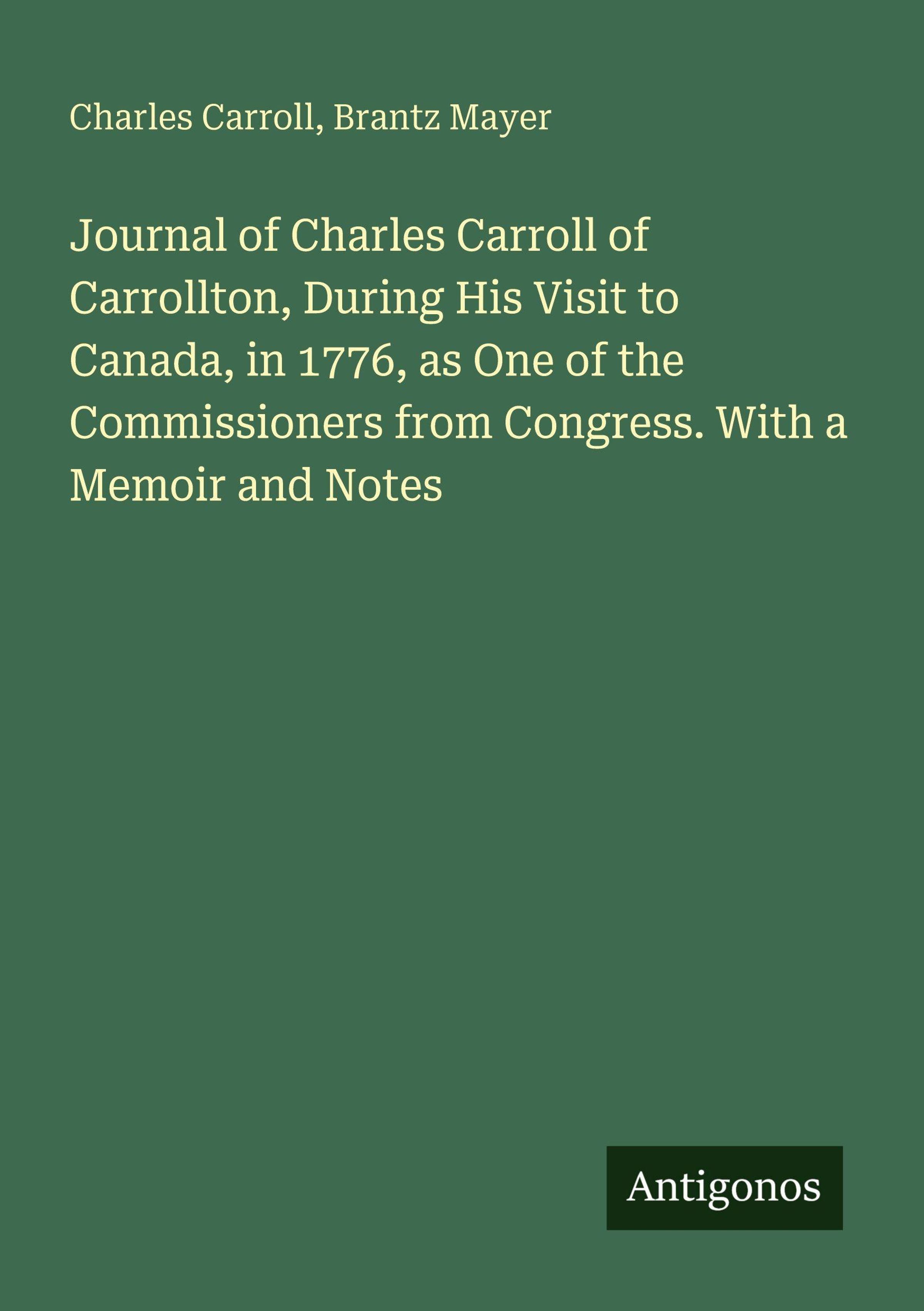 Journal of Charles Carroll of Carrollton, During His Visit to Canada, in 1776, as One of the Commissioners from Congress. With a Memoir and Notes