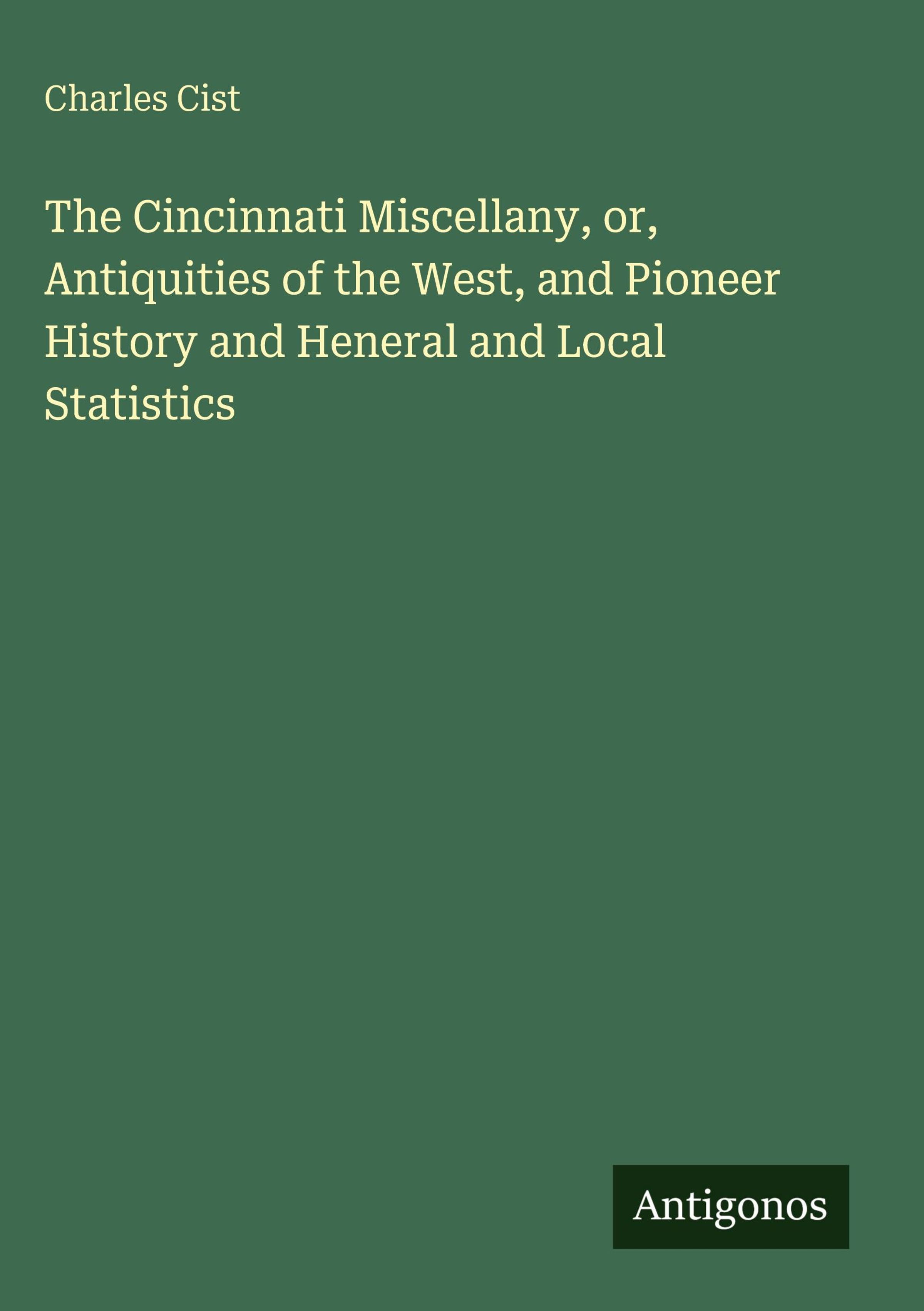 The Cincinnati Miscellany, or, Antiquities of the West, and Pioneer History and Heneral and Local Statistics