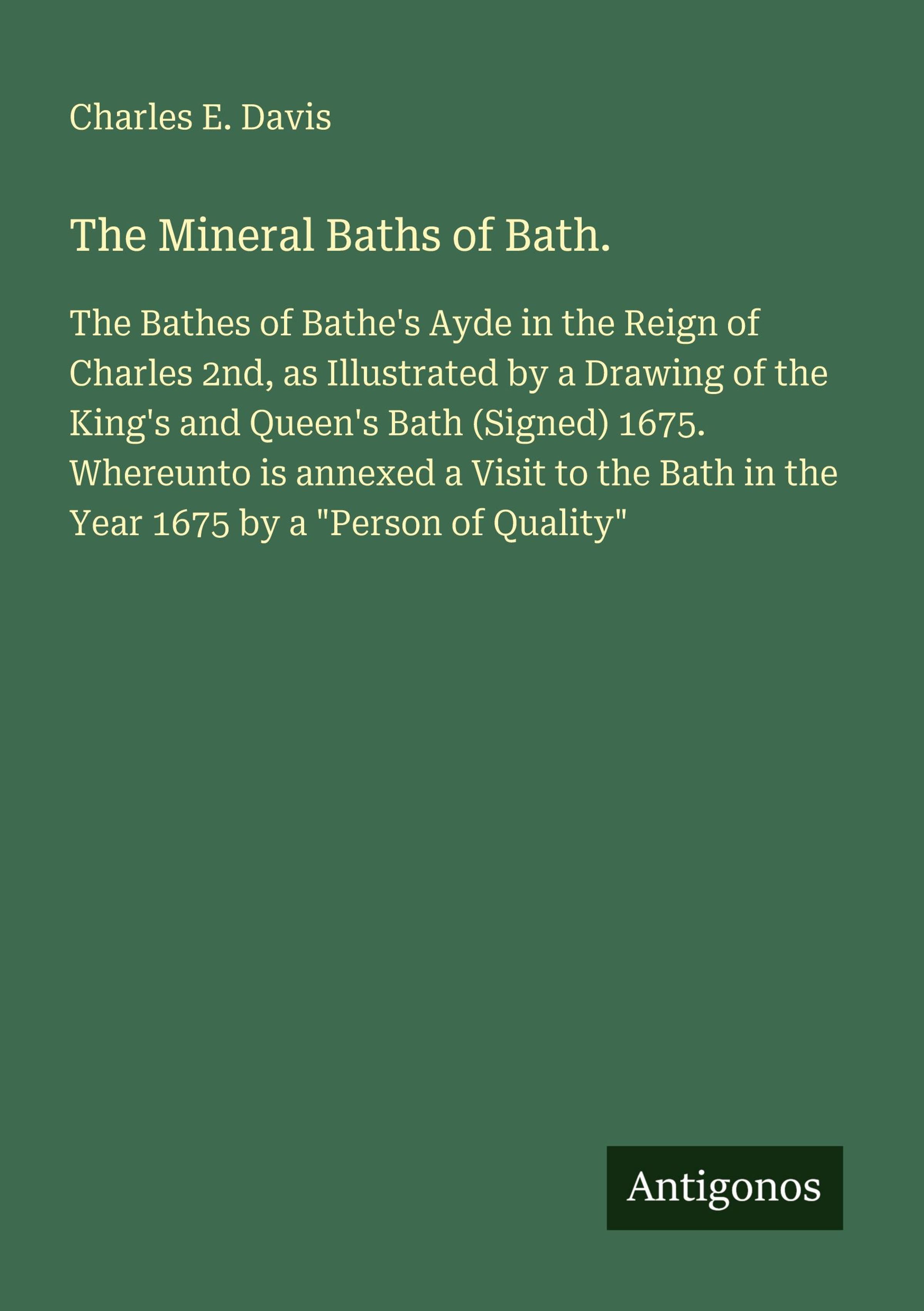 - The Bathes of Bathe's Ayde in the Reign of Charles 2nd, as Illustrated by a Drawing of the King's and Queen's Bath (Signed) 1675. Whereunto is annexed a Visit to the Bath in the Year 1675 by a "Person of Quality"