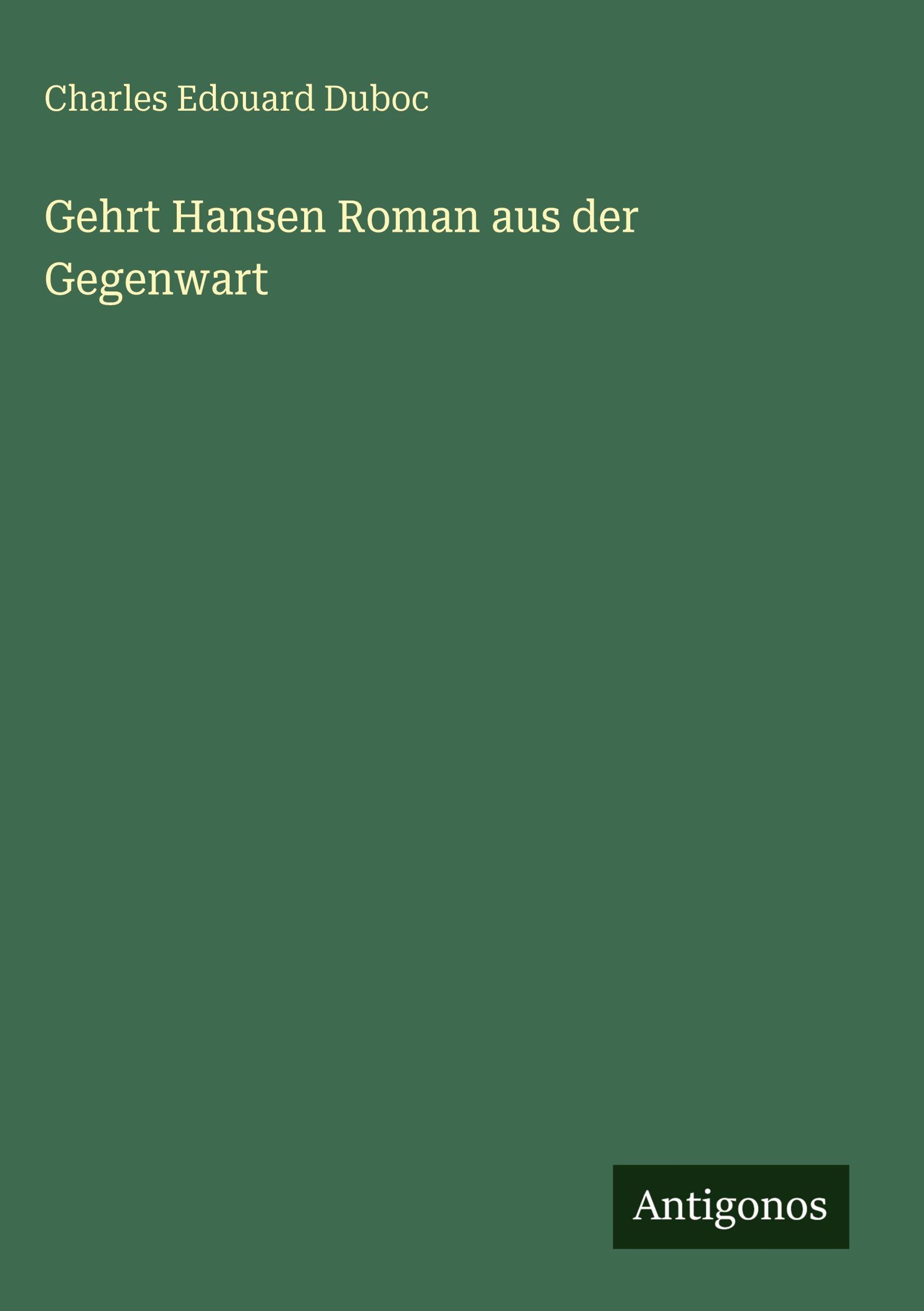 Charles Edouard Duboc: Gehrt Hansen Roman aus der Gegenwart, Gebunden
