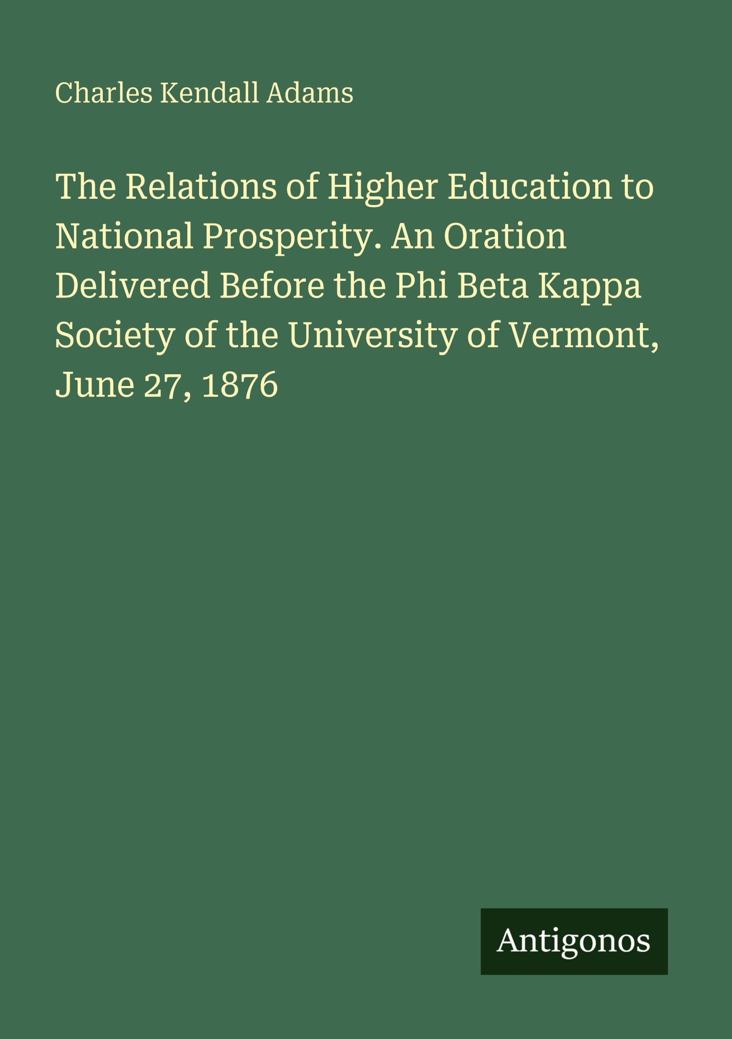 The Relations of Higher Education to National Prosperity. An Oration Delivered Before the Phi Beta Kappa Society of the University of Vermont, June 27, 1876