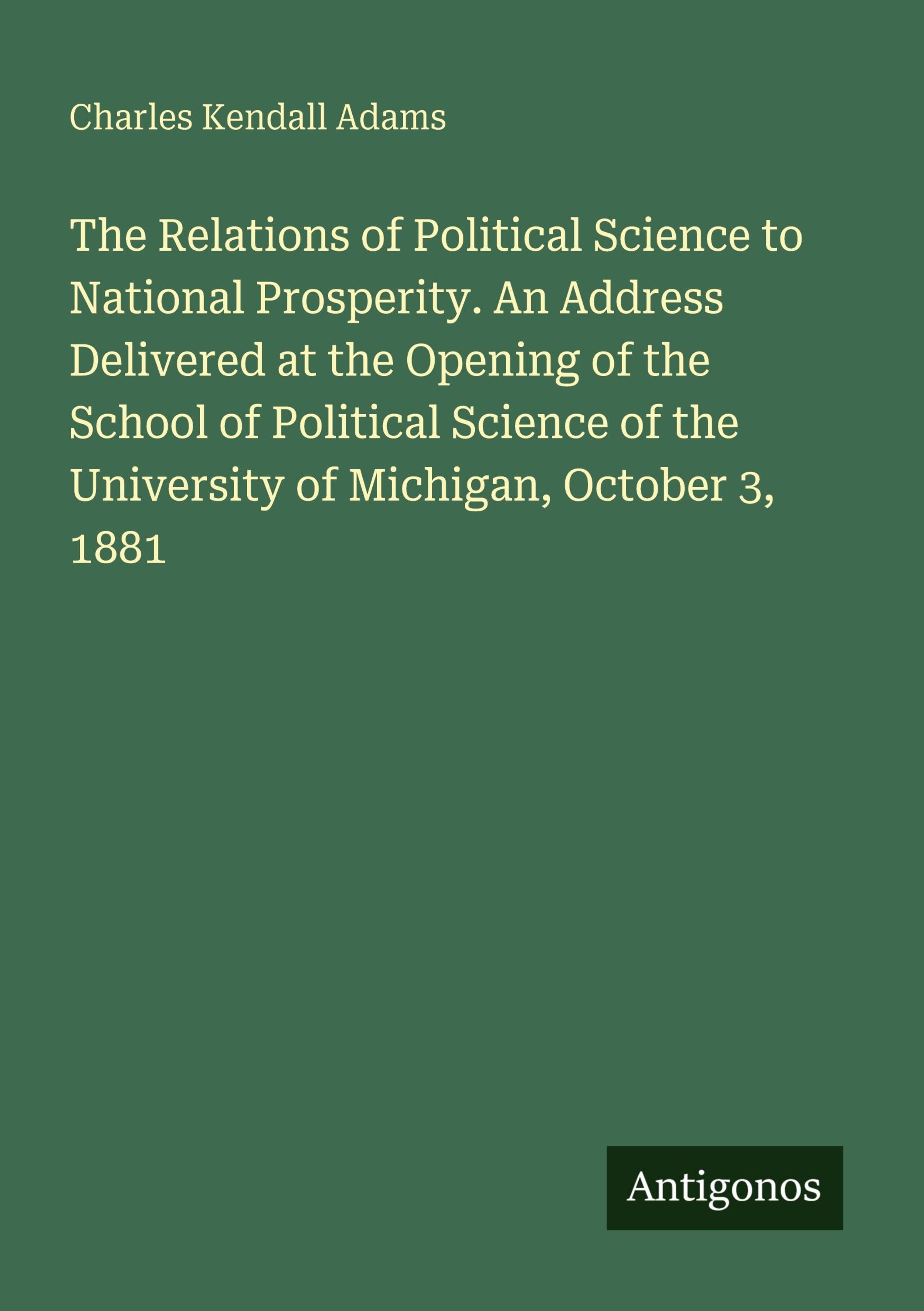 The Relations of Political Science to National Prosperity. An Address Delivered at the Opening of the School of Political Science of the University of Michigan, October 3, 1881