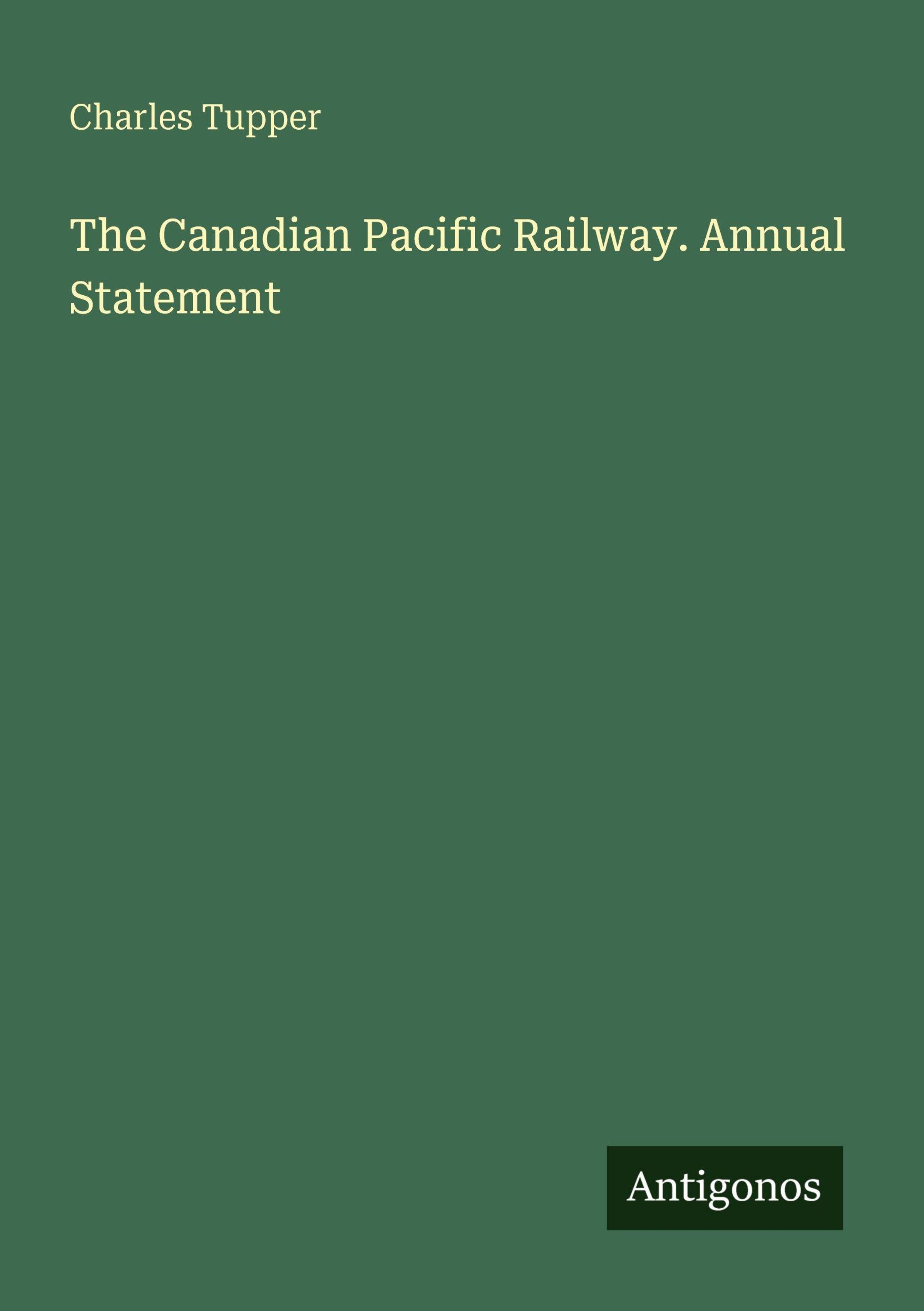 Charles Tupper: The Canadian Pacific Railway. Annual Statement, Kartoniert / Broschiert