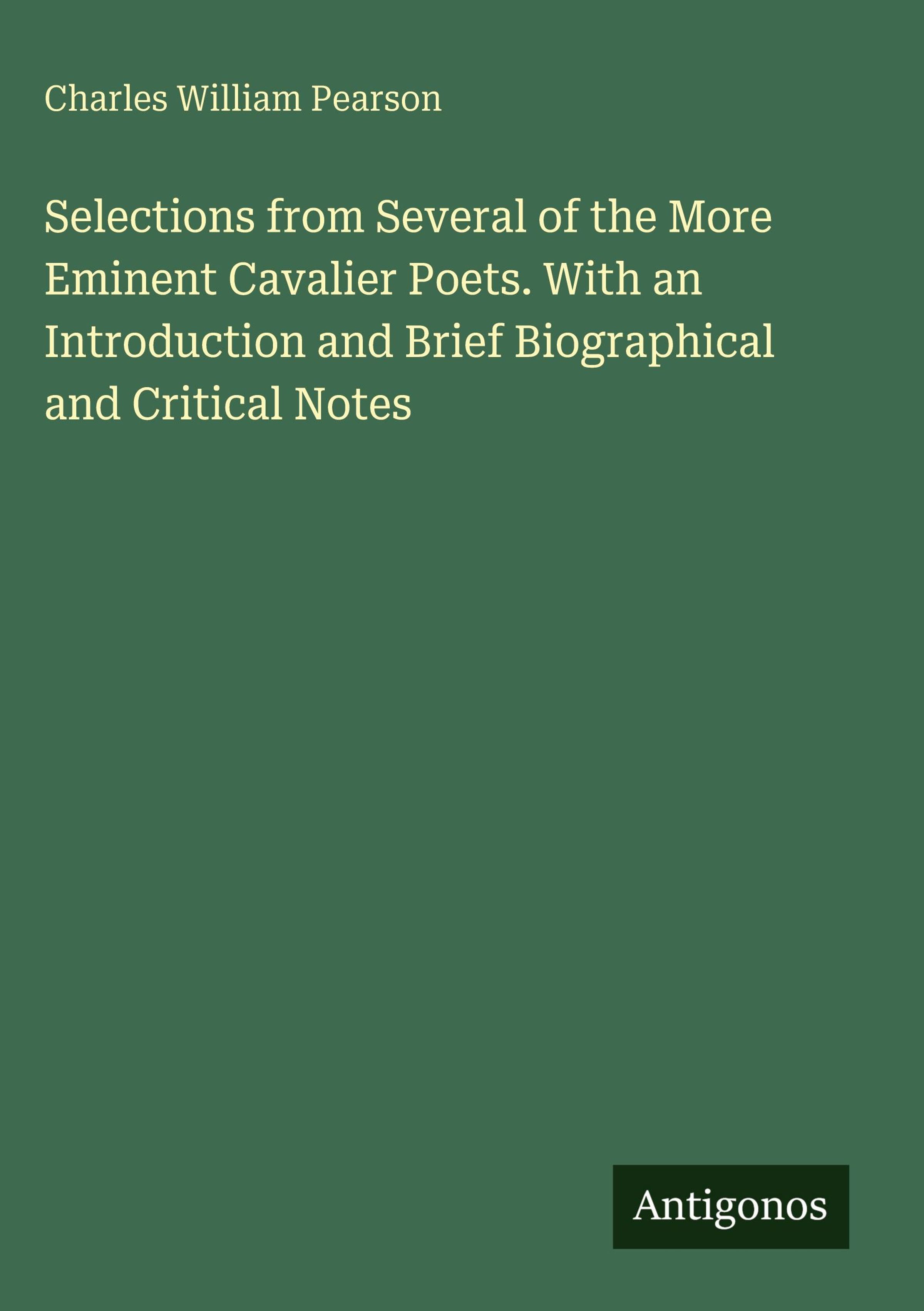 Charles William Pearson: Selections from Several of the More Eminent Cavalier Poets. With an Introduction and..., Gebunden