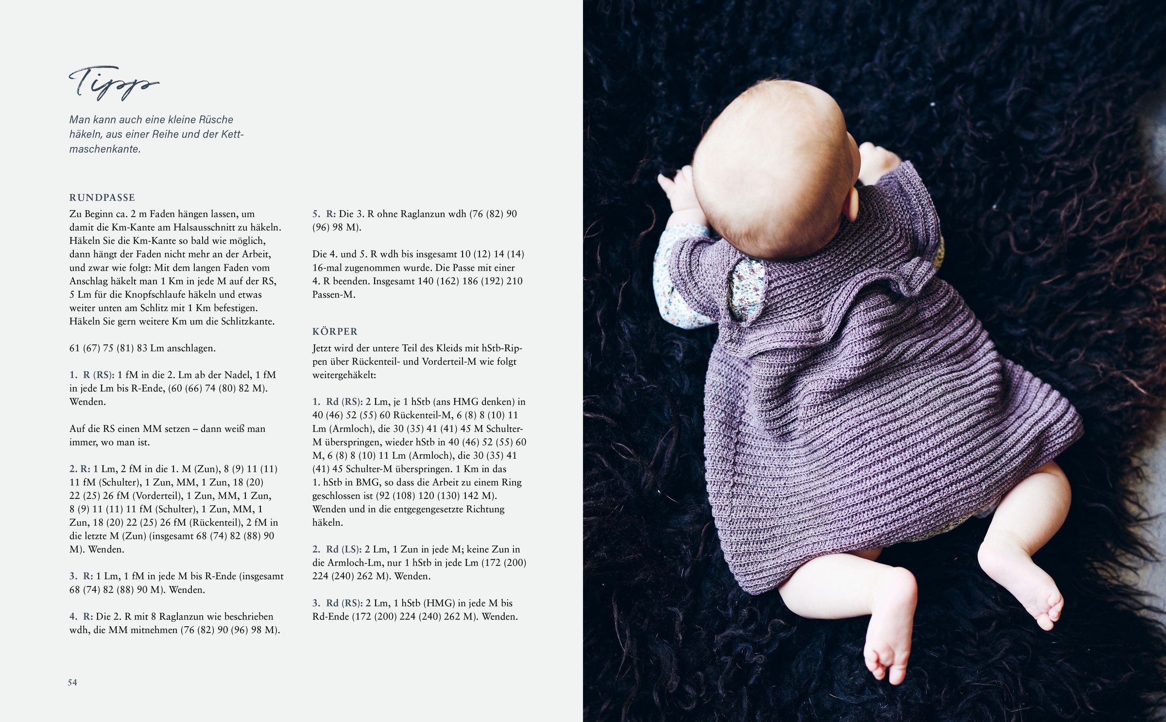 - 35 Häkelanleitungen für Babys und Kleinkinder: Enthält Pullover, Strampler, Jacken, Kleider, Hosen, Mützen und Socken sowie gehäkelte Babydecken und Spielzeug. Die Designs vereinen minimalistische Ästhetik mit funktionalen Details und eignen sich für Mädchen und Jungen gleichermaßen.