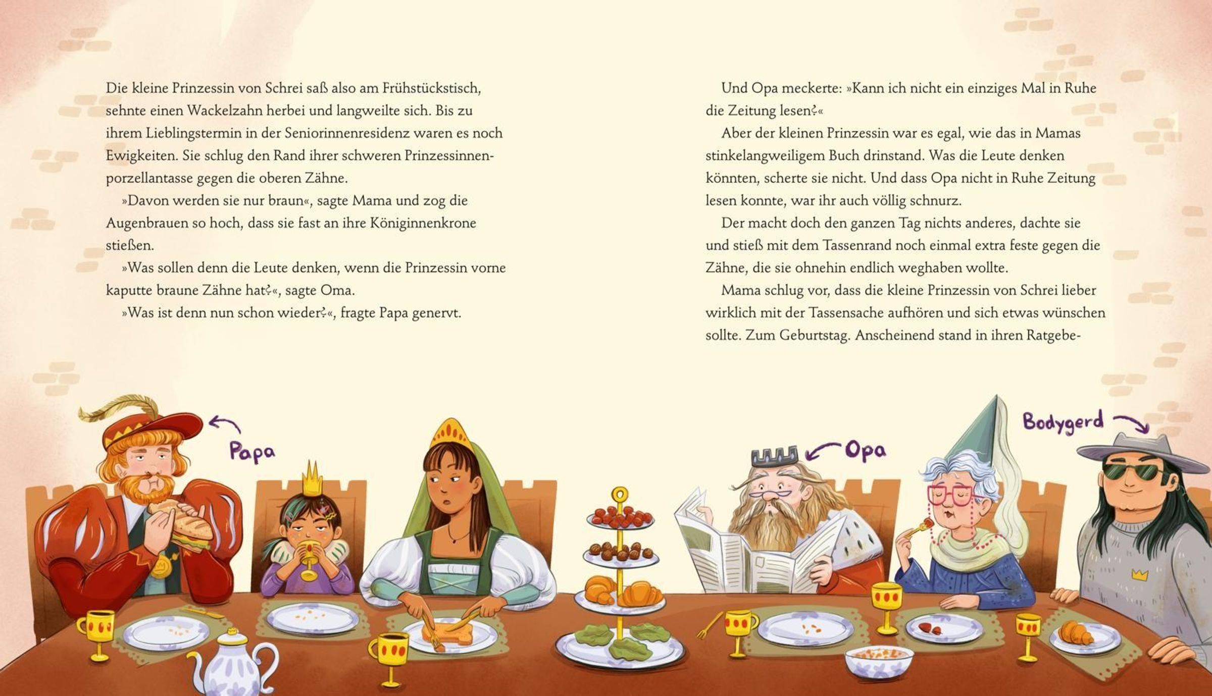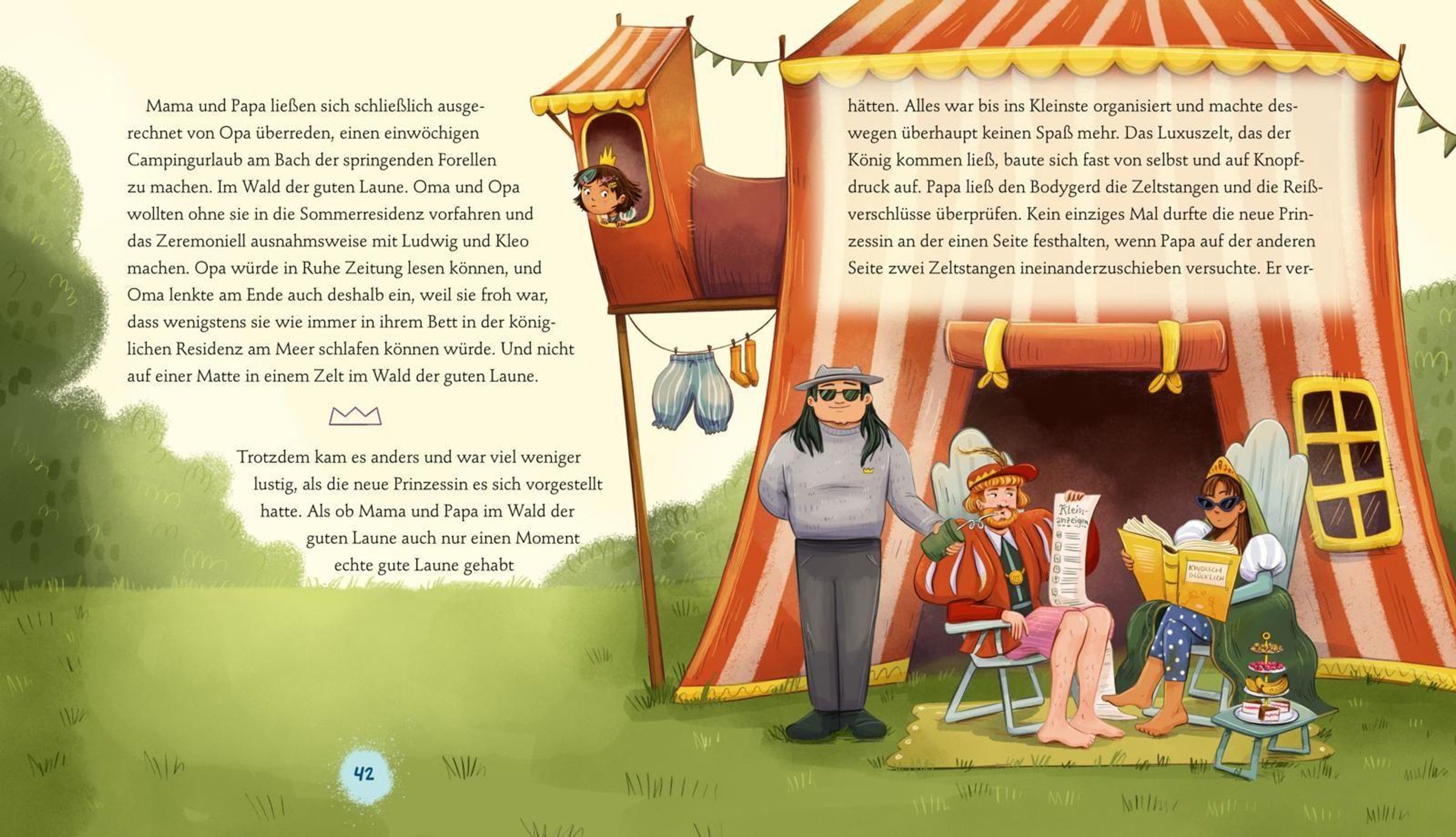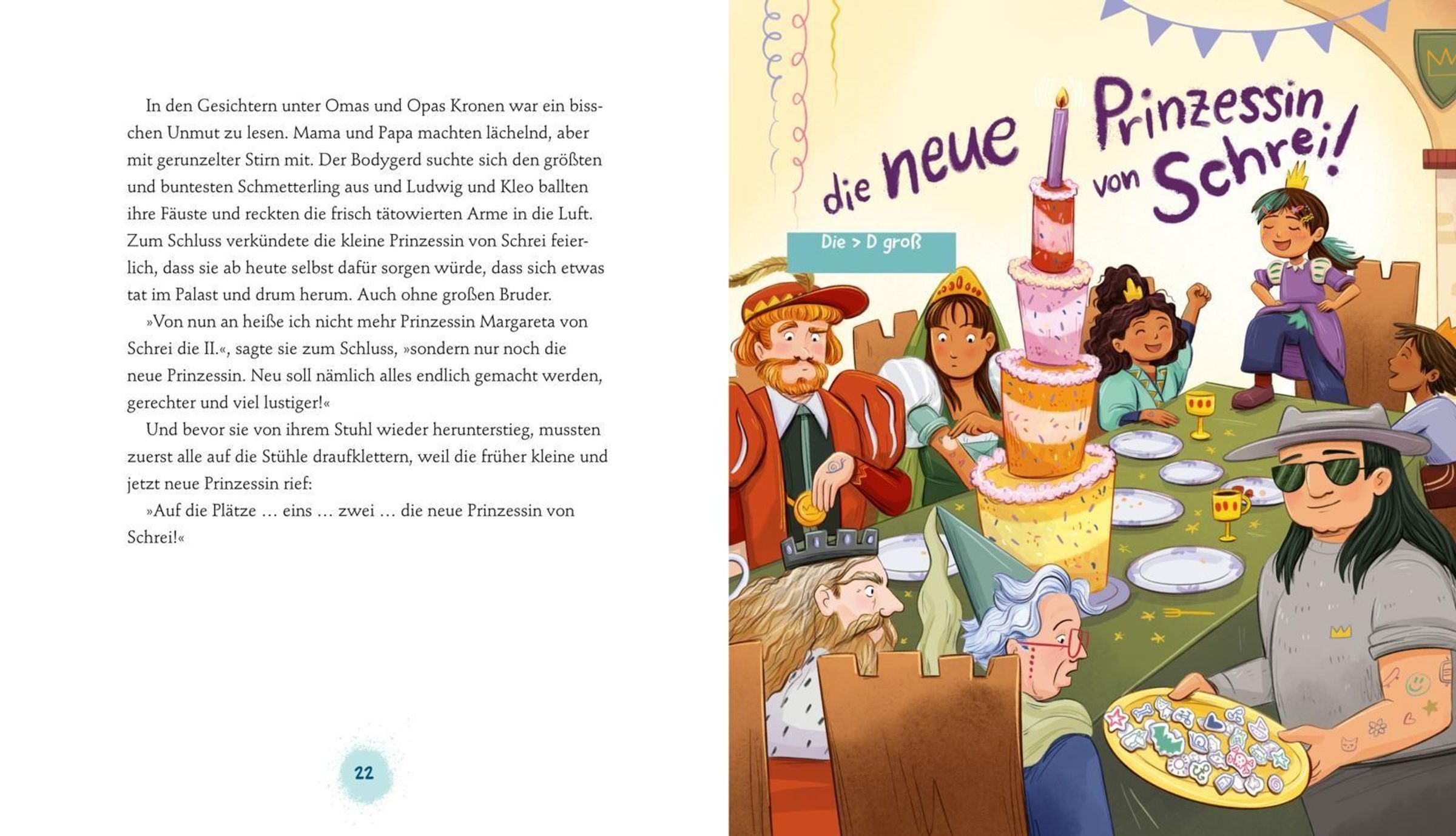 Die kleine Prinzessin Margareta lebt in einem großen Palast, ihr Bodygerd ist immer in der Nähe und sie soll irgendwann Königin werden. Das mit dem Königinwerden, findet die Prinzessin aber gar nicht gut und auch auf die ganzen, alten Regeln hat sie überhaupt keine Lust! Also beschließt sie, die Dinge selbst in die Hand zu nehmen und das olle Zeremoniell, das alles vorgibt, zu verändern: Statt ihres feinen Kleides trägt die Prinzessin eine Smokingweste, mit den prachtvollen Palastsachen macht sie einen Flohmarkt. Margareta beklebt nicht nur sich und den Bodygerd, sondern auch Mama und Papa mit Tattoos. Und der königliche Sommerurlaub führt in diesem Jahr ... auf den Campingplatz! Anfangs fremdeln die Erwachsenen mit den Veränderungen. Aber es dauert gar nicht so lange, bis alle verstehen, dass frischer Wind echt was Gutes ist.