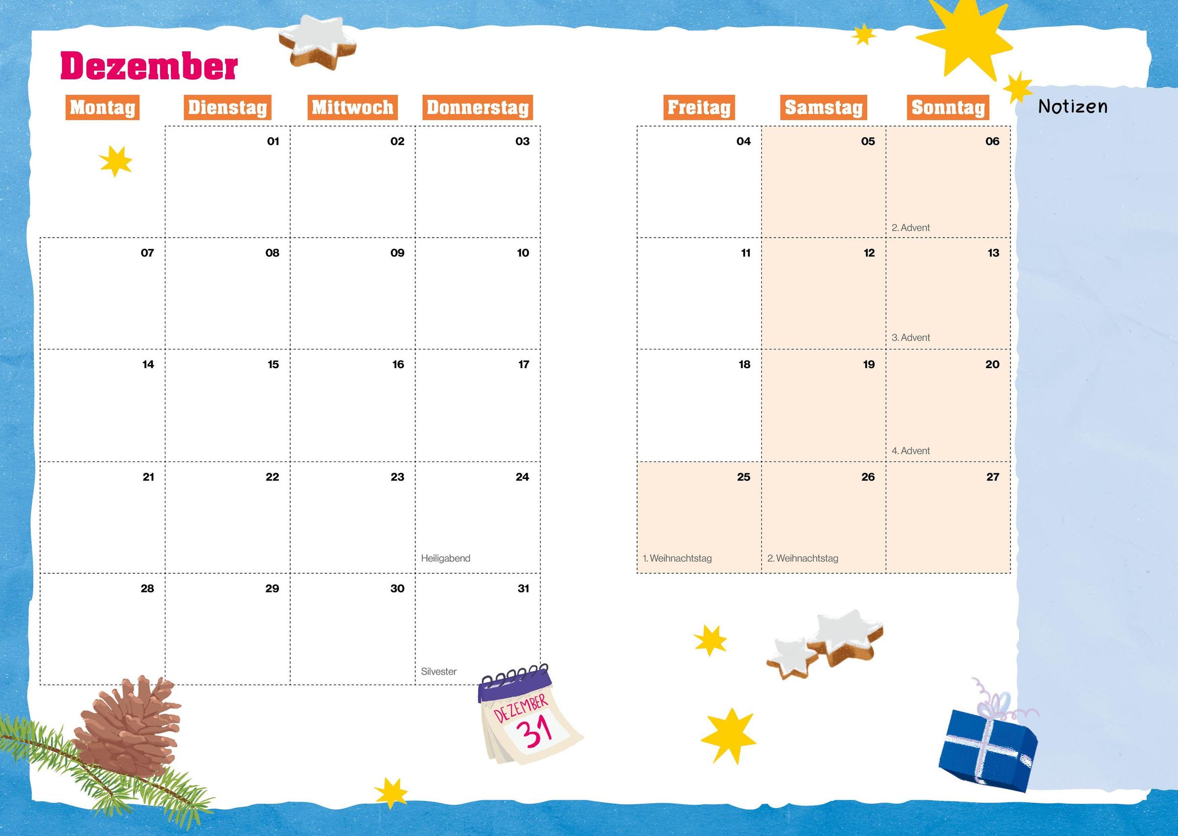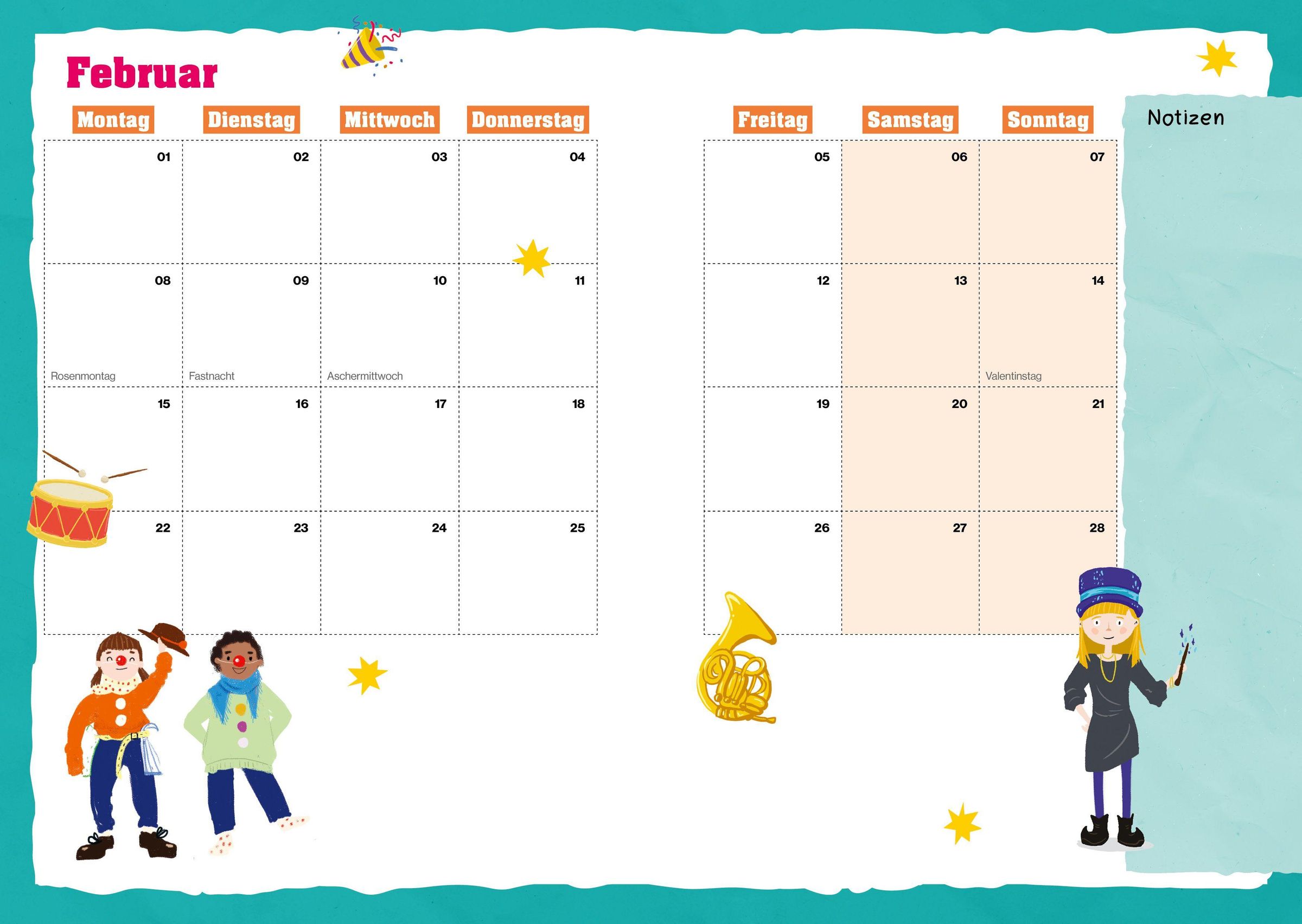 - Der Schülerkalender mit vielen Extras: Mitmachseiten, lustige Challenges, faszinierende Experimente, spannendes Sachwissen und mehr