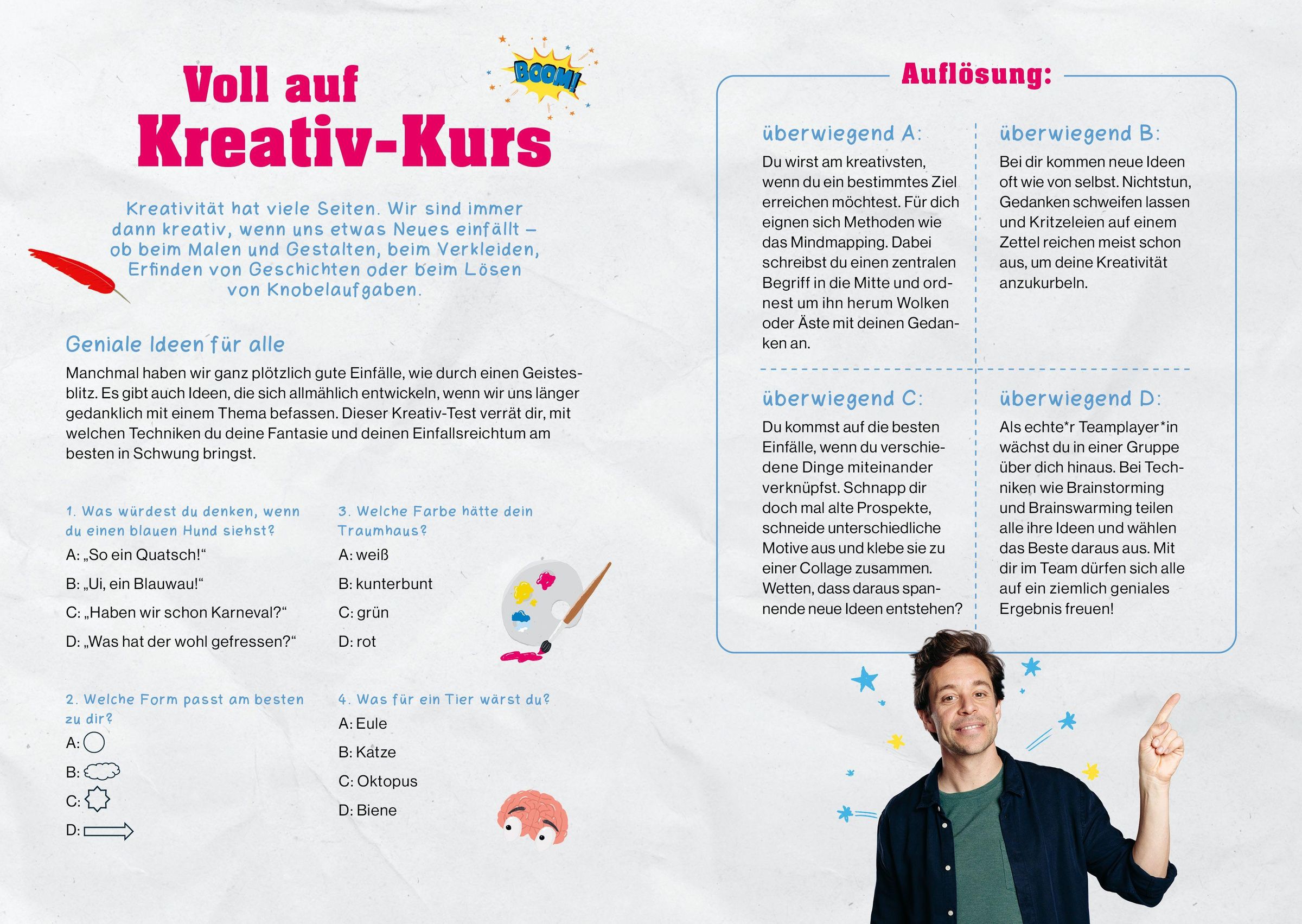 Finde in Test heraus, welcher Sport- oder Kreativ-Typ du bist, bringe deine Freund*innen mit verblüffenden Mathe-Tricks zum Staunen, werde mit dem Lern-Check zum Superhirn, entdecke praktische Survival-Tipps für die Ferien und vieles mehr.