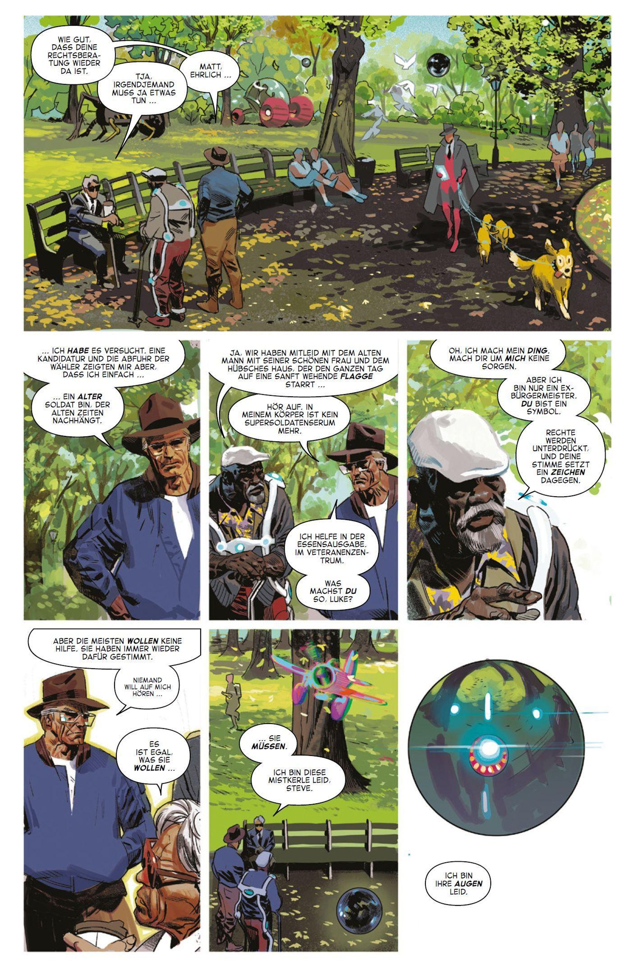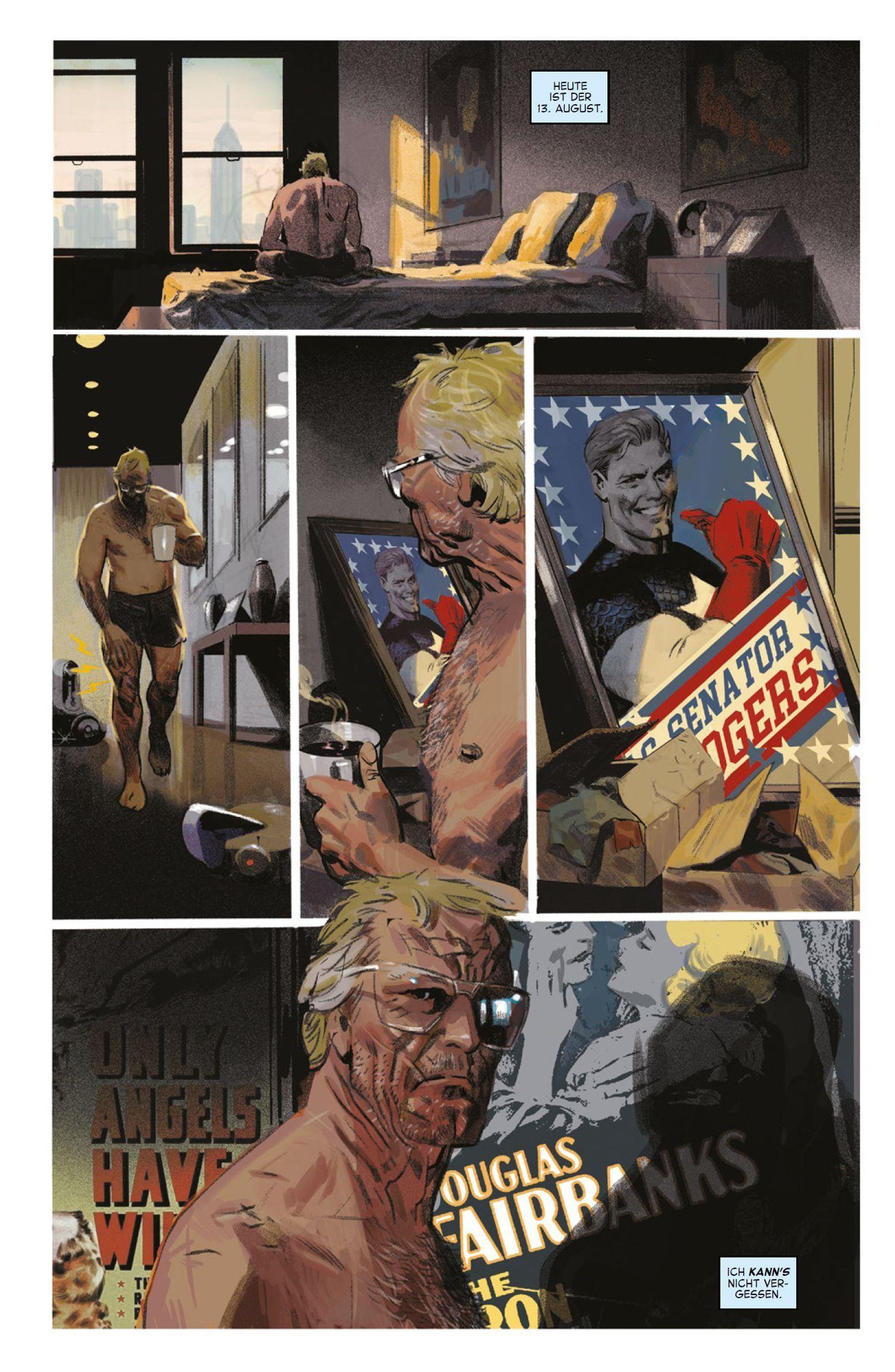 DIE LEGENDE SCHLÄGT ZURÜCK ... In den USA der Zukunft herrschen Überwachung und Unterdrückung. Steve Rogers sieht, dass sein Land ihn braucht. Doch Captain America ist inzwischen ein alter Mann und trägt kein Supersoldaten-Serum mehr in sich. Trotzdem will er die Unschuldigen beschützen und seine vom Bösen korrumpierte Nation retten. Und so kehrt Cap zurück und stellt sich dem Kampf - und er schlägt diese Schlacht nicht allein.