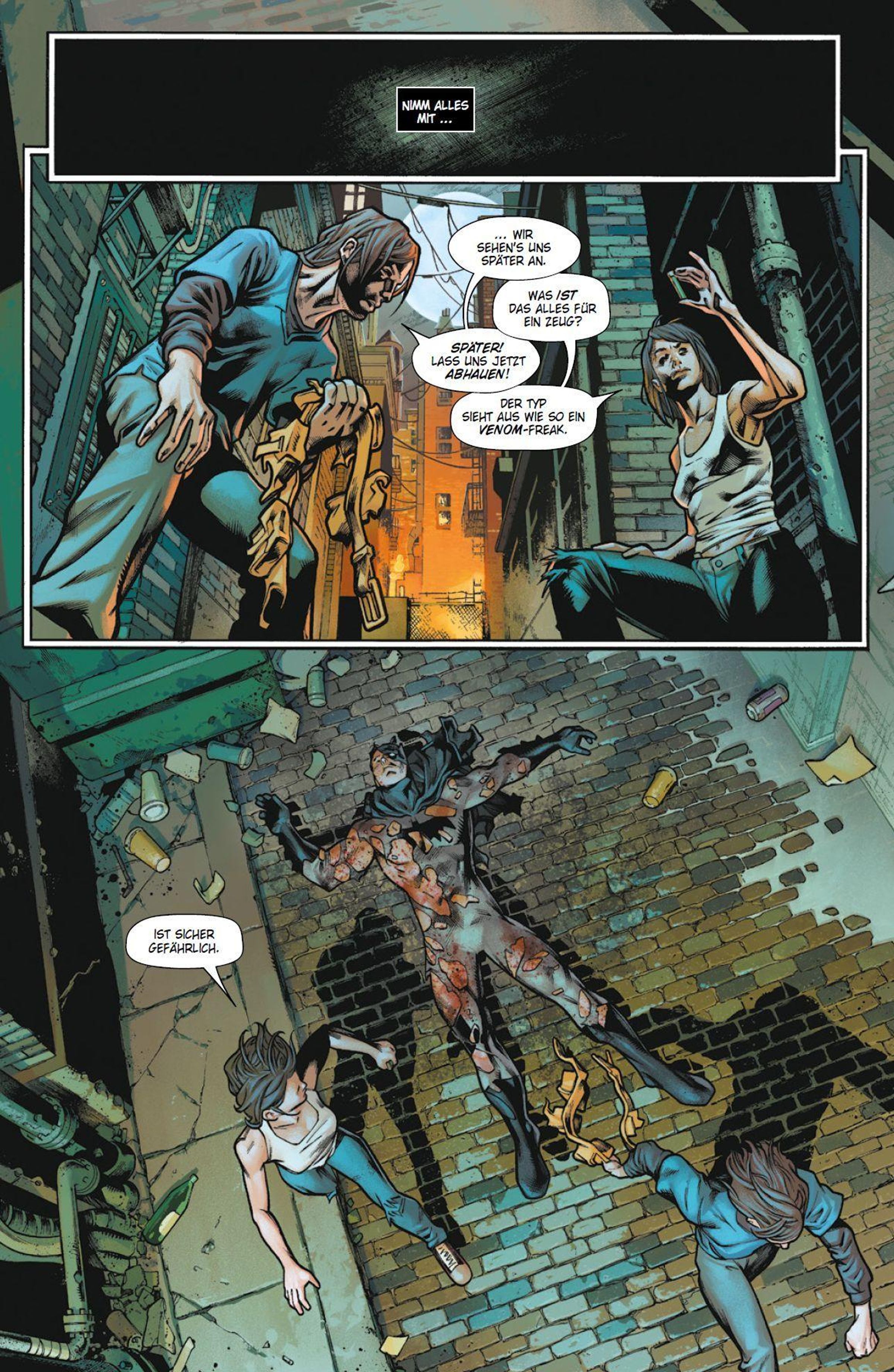 EIN GOTHAM OHNE HOFFNUNG Bruce Wayne strandet im Gotham City einer anderen Realität. In dieser Stadt ohne Hoffnung regiert das Verbrechen. Alle tanzen nach der Pfeife des unaufhaltsamen Superschurken Red Mask - auch Selina Kyle. Batman versucht, die Geheimnisse dieses gefährlichen Gothams zu ergründen - und es zu retten. Unterdessen sucht Robin in den Weiten des Multiversums nach seinem tot geglaubten Mentor.