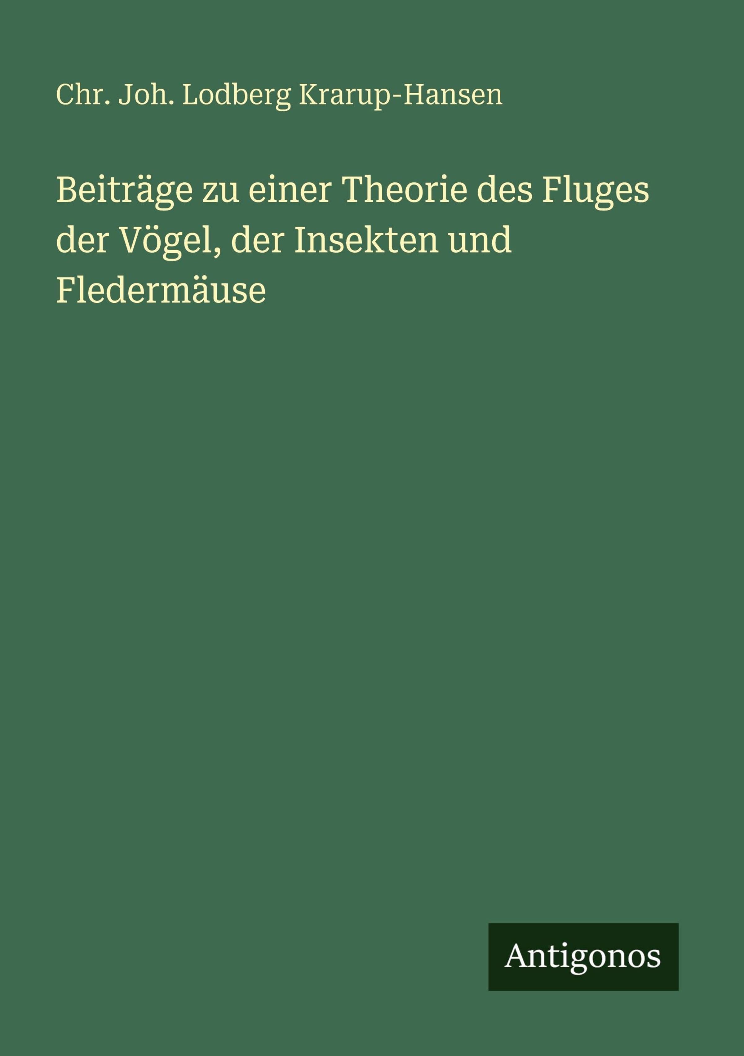 Chr. Joh. Lodberg Krarup-Hansen: Beiträge zu einer Theorie des Fluges der Vögel, der Insekten und Fledermäuse, Kartoniert / Broschiert