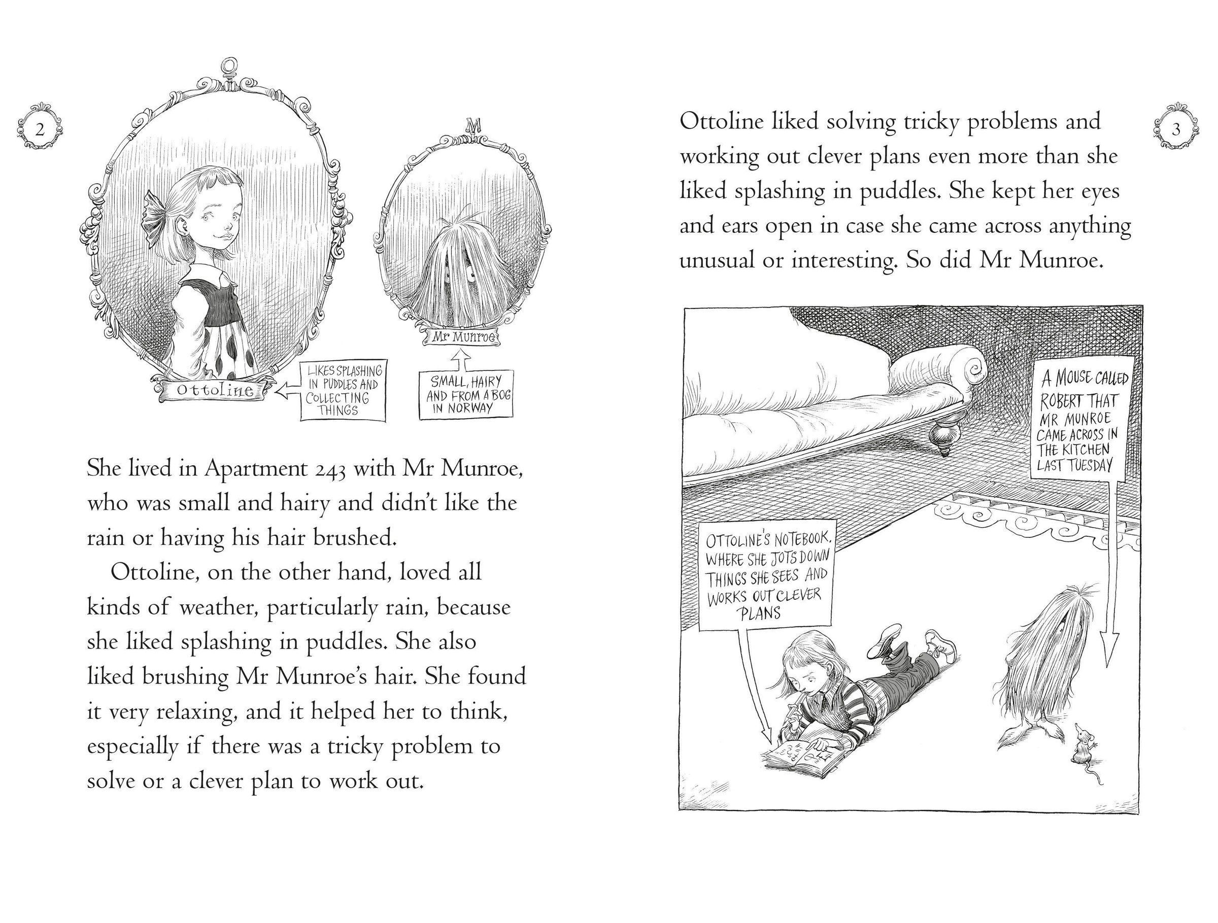 Ottoline lives in a stylish apartment in Big City with a small hairy creature called Mr Munroe. Together they look after the Brown family's eclectic collections - and dabble in a spot of detective work. So they are the first to the scene of the crime when a string of high-society dog-nappings and jewel thefts hits Big City.