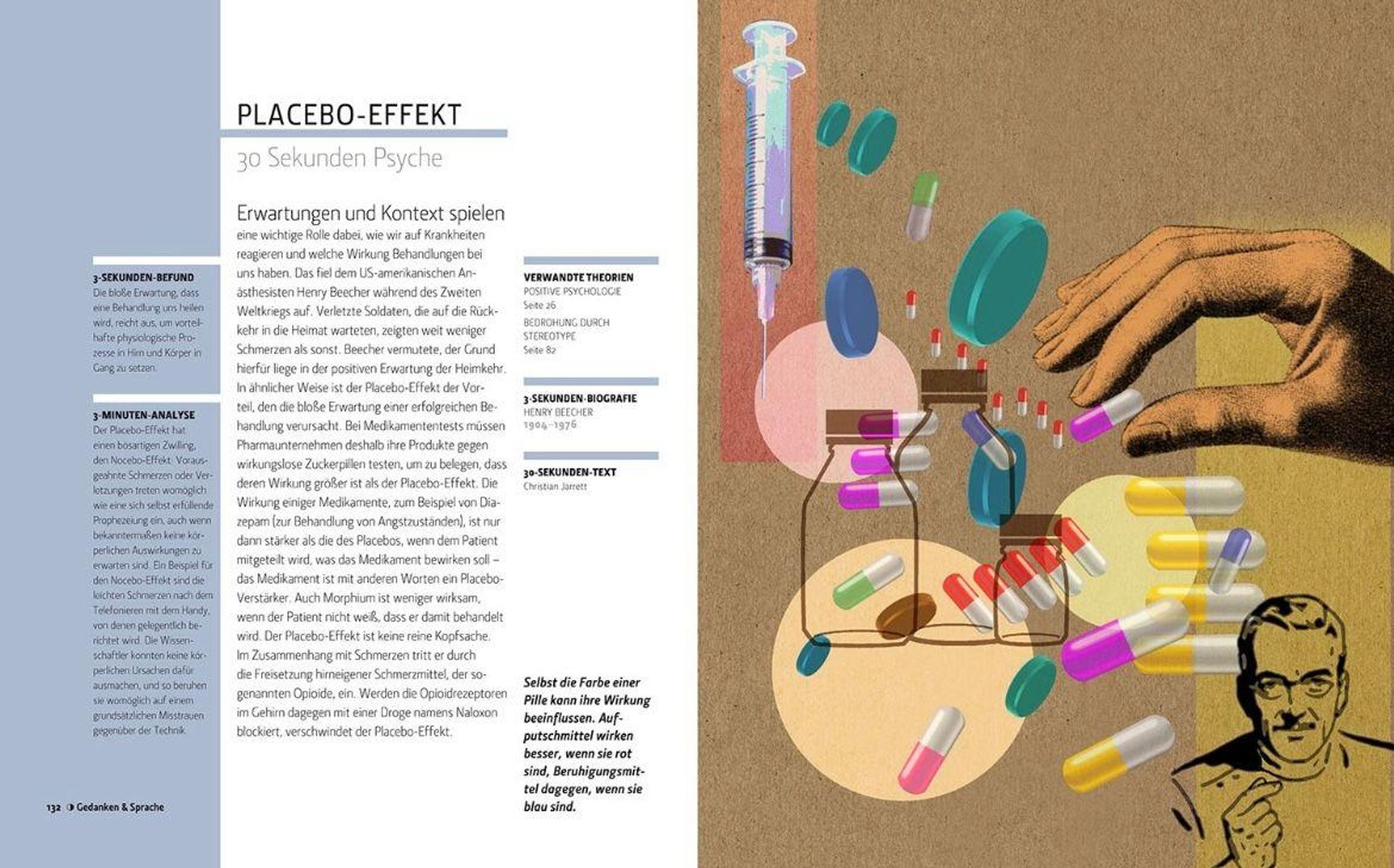 Pawlowsche Hunde, Psychoanalyse, Placebo-Effekt und Kognitive Verhaltenstherapie - natürlich haben wir schon davon gehört, aber reichen unsere Kenntnisse der Psychologie aus, um auf einer Party oder im Gespräch unter Freunden mithalten zu können? Psychologie in 30 Sekunden thematisiert die 50 wichtigsten Strömungen und Modelle dieses faszinierenden Themenkomplexes und erläutert sie in etwa einer halben Minute auf nicht mehr als zwei Seiten. Doch das Buch bringt nicht nur Licht ins Dunkel der menschlichen Psyche, sondern stellt uns auch viele Koryphäen wie William James, Aaron Beck und - last but not least - Sigmund Freud vor. Vom Behaviorismus bis zum Kognitivismus: All das hilft uns, die geistigen Kräfte in unserem Inneren zu verstehen.