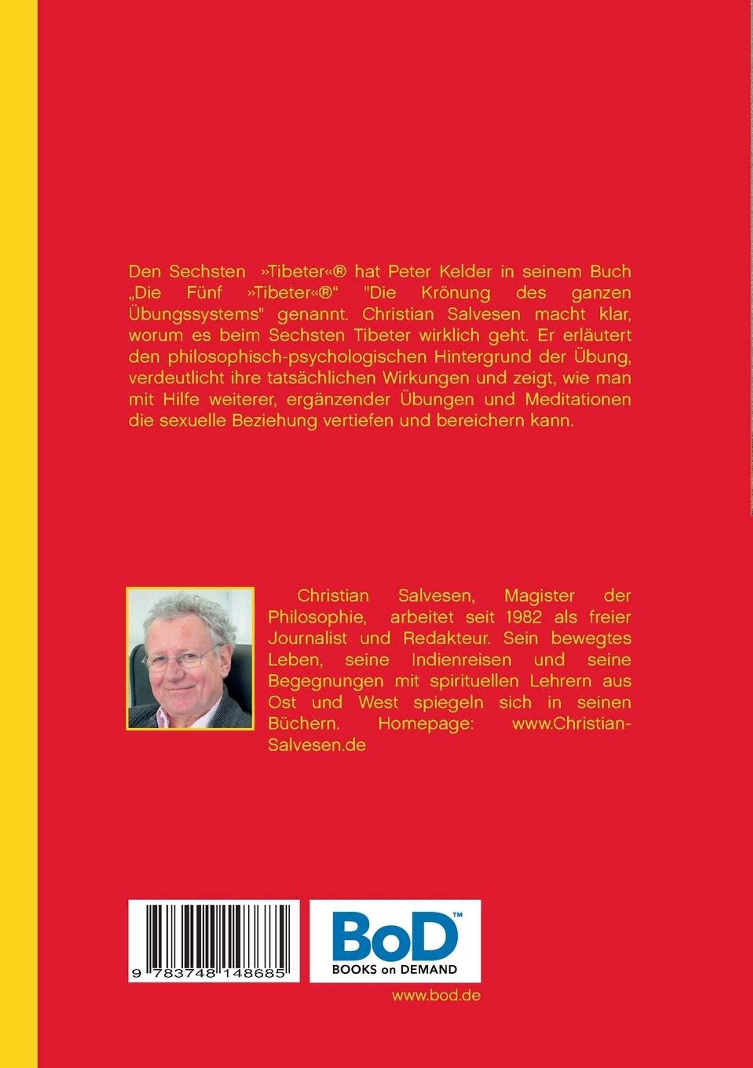 Den Sechsten Tibeter hat Peter Kelder in seinem Buch 'Die Fünf Tibeter' "Die Krönung des ganzen Übungssystems" genannt. Christian Salvesen macht in diesem Buch klar, worum es beim Sechsten Tibeter wirklich geht: Er erläutert den philosophisch-psychologischen Hintergrund der Übung, verdeutlicht ihre tatsächlichen Wirkungen und zeigt, wie man mit Hilfe weiterer, ergänzender Übungen und Meditationen ein intensiveres Körpergefühl entwickeln, die individuelle Liebesfähigkeit stärken und eine sexuelle Beziehung vertiefen und bereichern kann.
