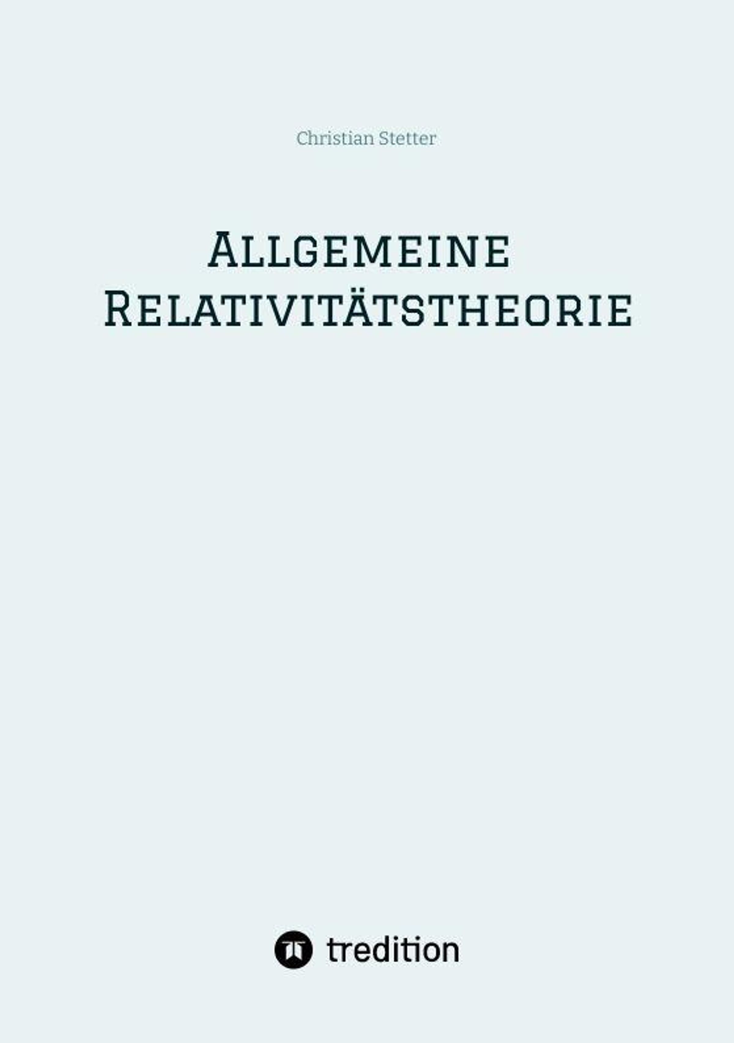 Text: "Christian Stetter" oben, "ALLGEMEINE RELATIVITÄTSTHEORIE" mittig, "tredition" unten mit symbolischem Logo darunter., Buch