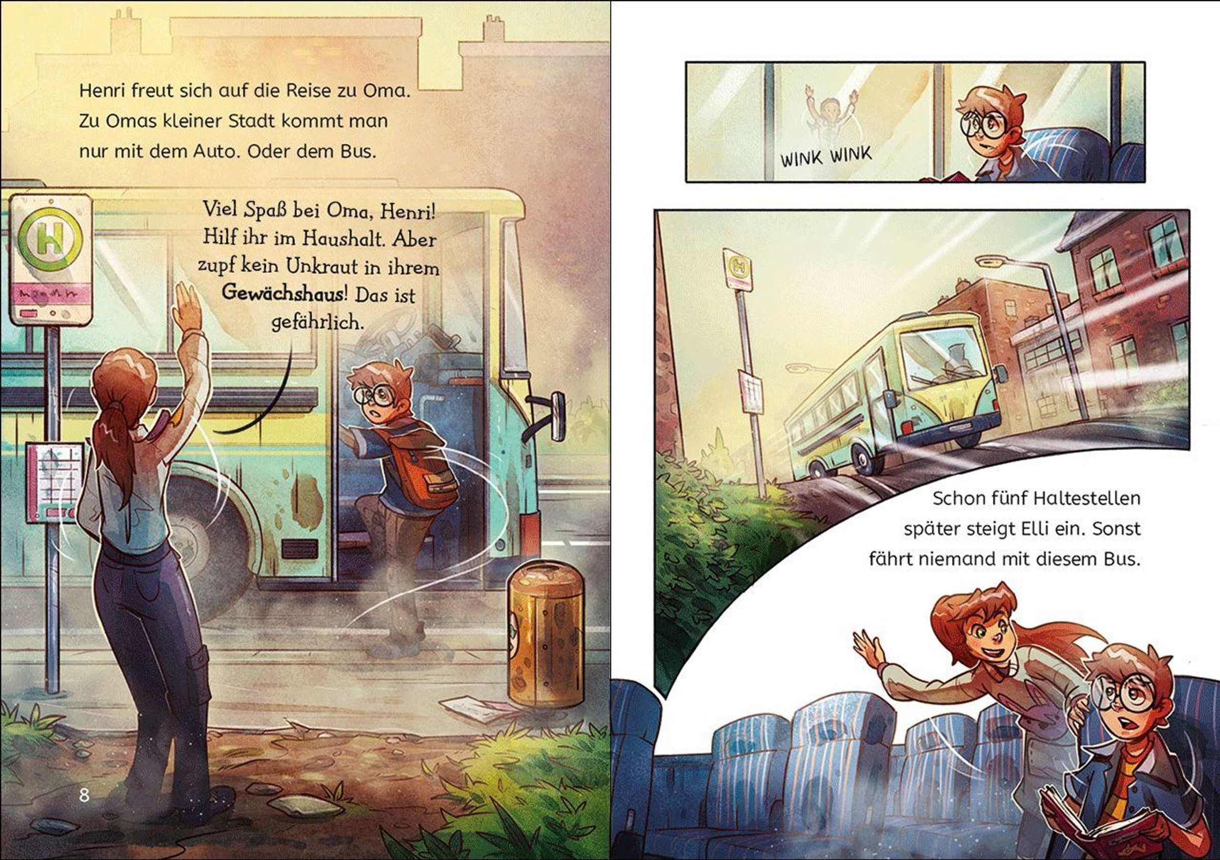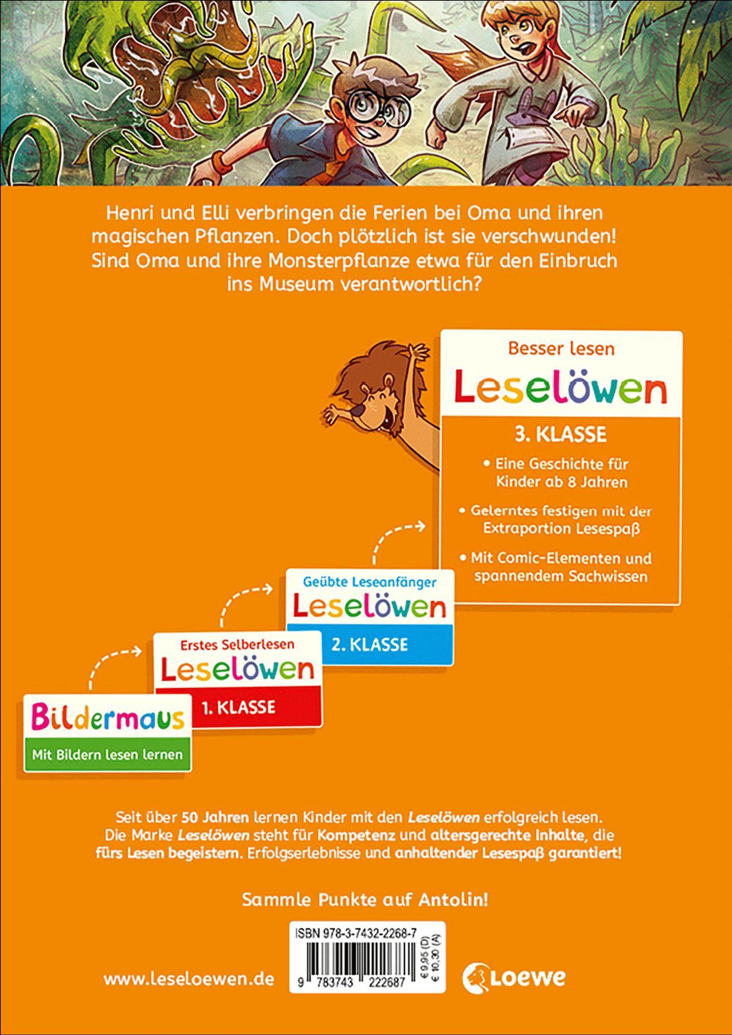 Henri und Elli verbringen die Ferien bei Oma und ihren magischen Pflanzen. Doch am Morgen ist Oma plötzlich verschwunden! Geflohen! Das behauptet zumindest der Dorfpolizist. Er verdächtigt sie, mit ihrer Monsterpflanze ins Museum eingebrochen zu sein. Aber ist Oma wirklich eine Kunstdiebin? Mithilfe der magischen Pflanzen machen sich Henri und Elli auf die Suche nach ihr - und nach dem wahren Täter.