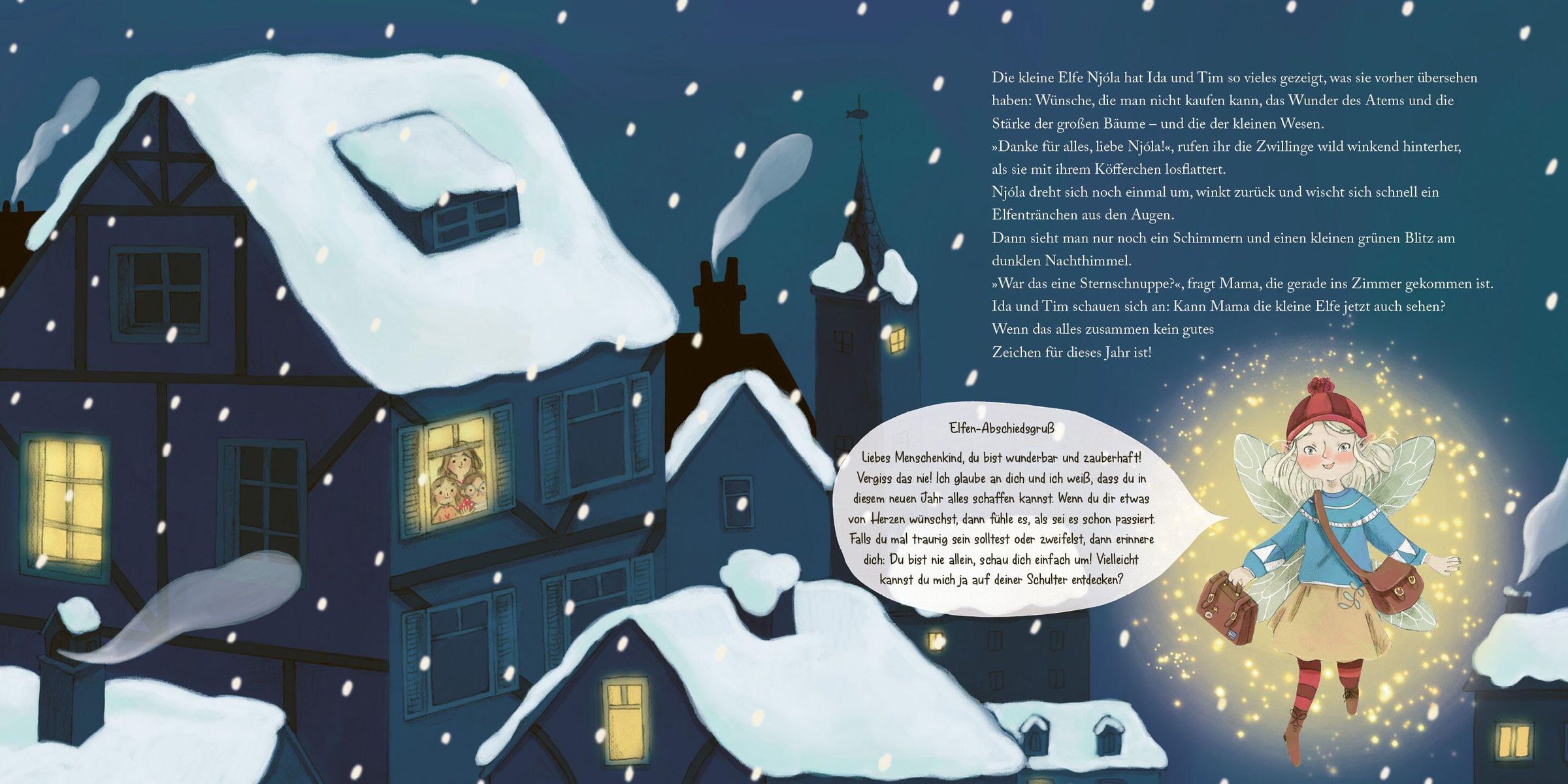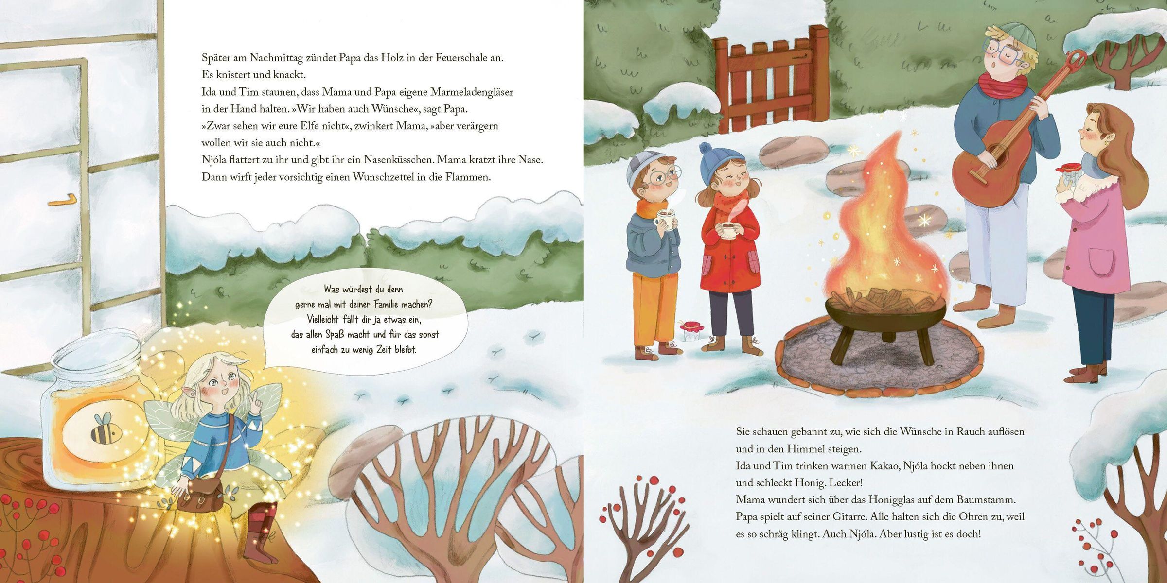 Das Weihnachtsfest ist vorbei - doch nun wartet auf Ida und Tim eine ganz besondere Zeit! Denn mitten in der Nacht flattert die Elfe Njóla in ihr Zimmer und lädt die beiden ein, den Zauber der Rauhnächte zu entdecken. Gemeinsam mit ihren Eltern und ihrer Großmutter genießen die Kinder nun eine gemütliche Familienzeit: Sie erkunden die Wunder der winterlichen Natur, lernen spannende Bräuche wie das magische Wünsche-Ritual kennen und viele ruhige Achtsamkeitsübungen, die alle Sinne verzaubern. So können Ida und Tim das alte Jahr gut verabschieden und sich zusammen mit ihrer Familie auf alles Neue einstimmen ... bis zu den nächsten Rauhnächten!