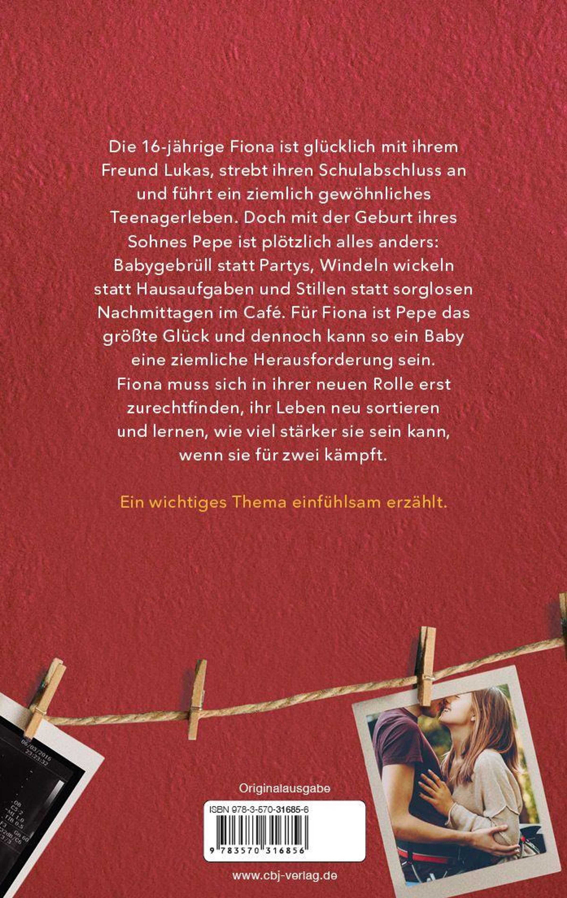 Die 16-jährige Fiona ist glücklich mit ihrem Freund Lukas, strebt ihren Schulabschluss an und führt ein ziemlich gewöhnliches Teenagerleben. Doch mit der Geburt ihres Sohnes Pepe ist plötzlich alles anders: Babygebrüll statt Partys, Windeln wickeln statt Hausaufgaben und Stillen statt sorglosen Nachmittagen im Café. Für Fiona ist Pepe das größte Glück, aus ihrem Umfeld bekommt sie die beste Unterstützung und dennoch kann so ein Baby eine ziemliche Herausforderung sein. Fiona muss sich in ihrer neuen Rolle erst zurechtfinden, ihr Leben neu sortieren, herausfinden, was sie will, und lernen, wie viel stärker sie sein kann, wenn sie für zwei kämpft statt nur für sich.