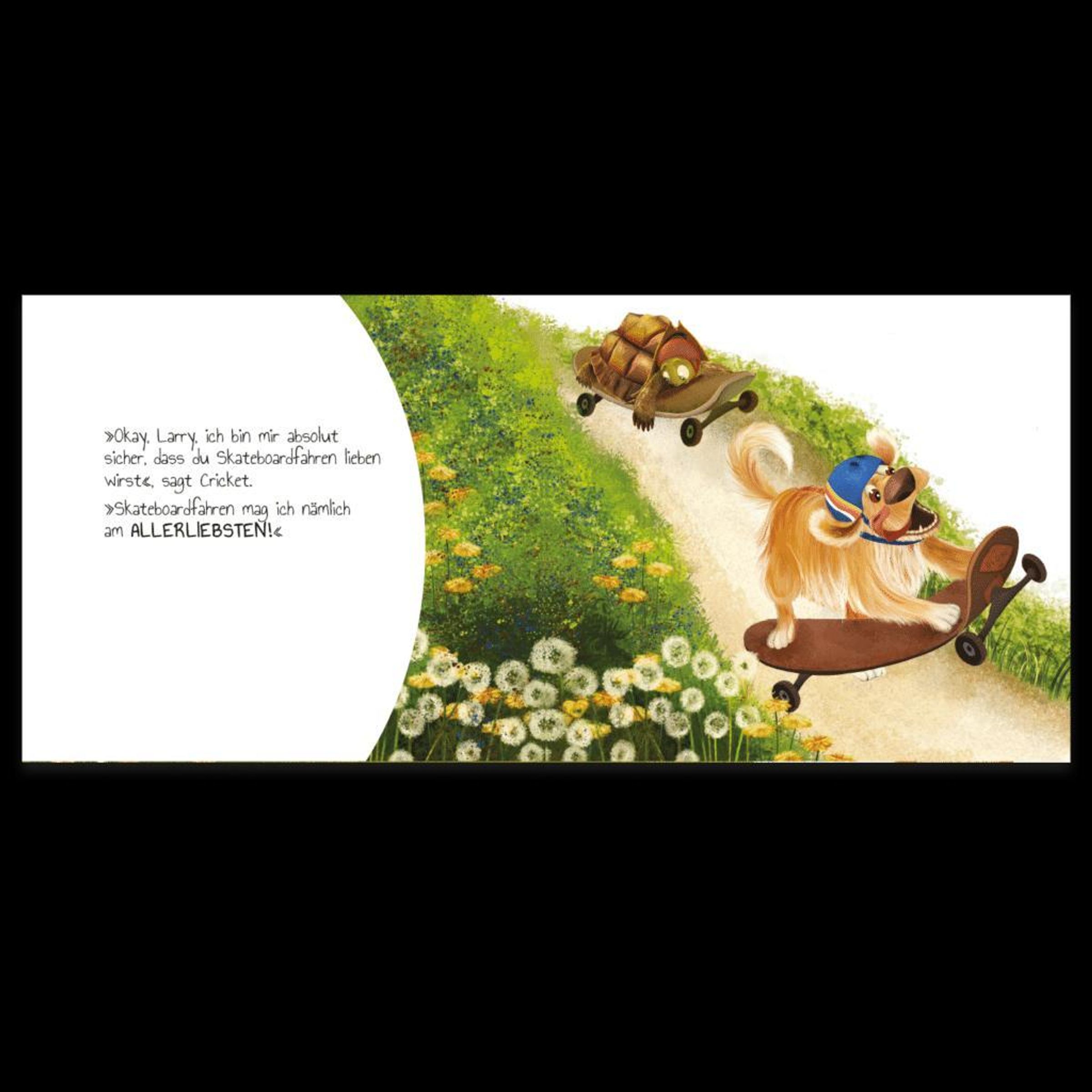 Rüde Cricket sprudelt nur so über vor Energie. Kein Wunder also, dass er der Erste im Auto ist, als seine Familie einen Flohmarkt-Ausflug plant. Zwischen altem Spielzeug und Möbeln entdeckt Cricket eine traurige Schildkröte. Eine echte! Und die will er behalten. Die Schildkröte wird auf den Namen Larry getauft und darf mit nach Hause kommen. Dort zeigt Cricket Larry all seine liebsten Beschäftigungen. Doch was mag die Schildkröte eigentlich am liebsten? Die Antwort fällt Larry leicht: 'Bei dir zu sein, Cricket', sagt er.
