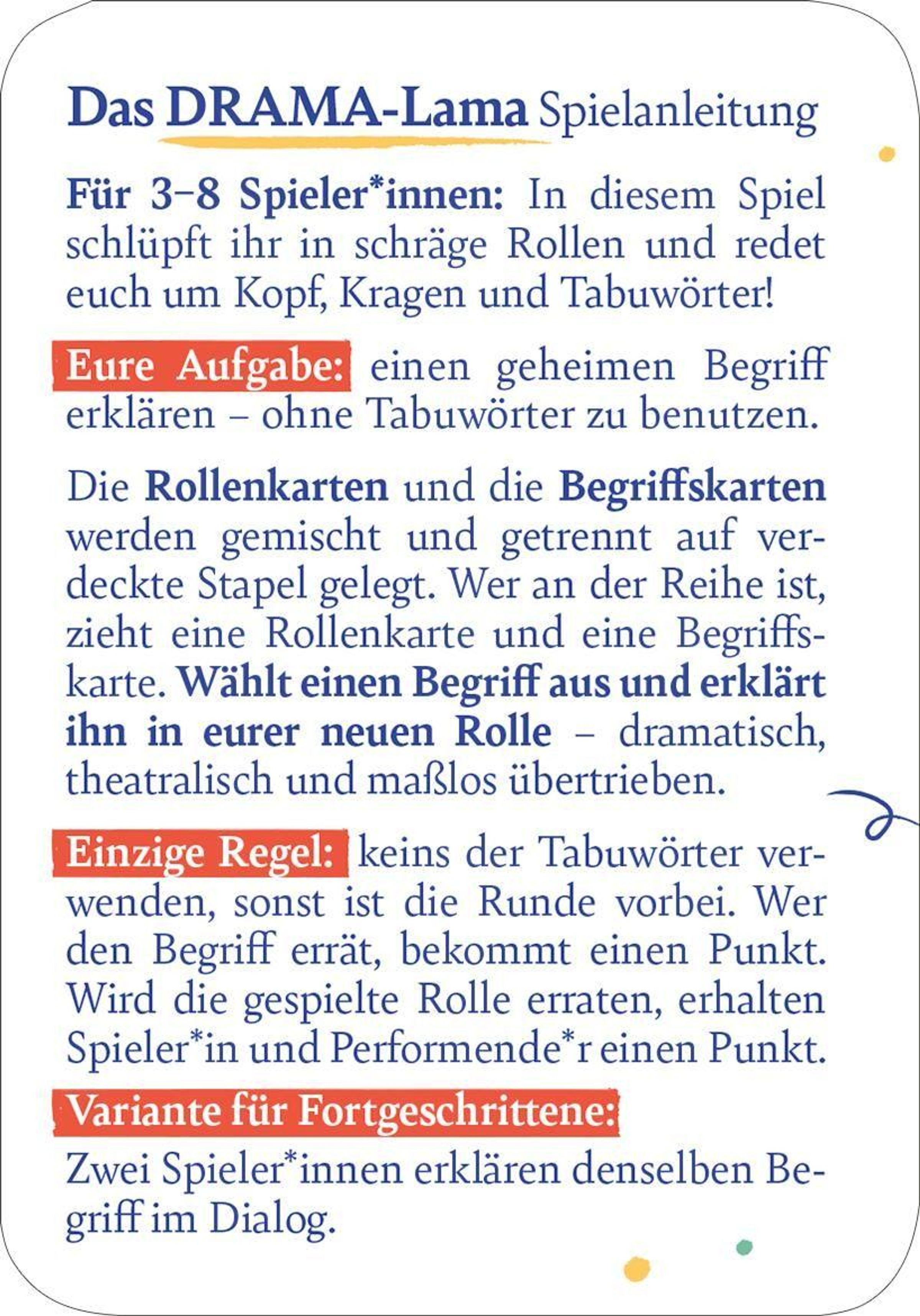 Mit diesem kreativen Spiel wird deine nächste Party ein einziges Spektakel! Diese Kartenbox mit 50 liebevoll gestalteten Karten sorgt für jede Menge Spaß, Lacher und schauspielerische Höchstleistungen. Schlüpfe in verrückte Rollen, erkläre geheime Begriffe und rate mit deinen Freund: innen um die Wette. Perfekt für Partys, Geburtstage oder als lustiges Mitbringsel!