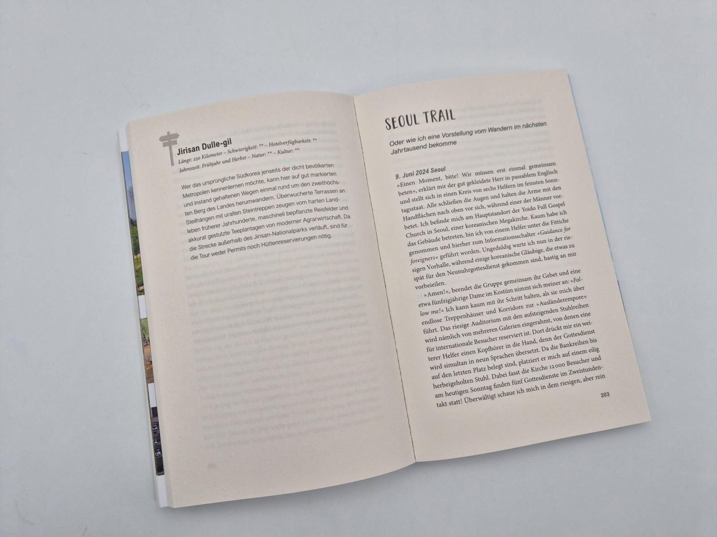 Einfühlsam erzählt sie von der Wanderung in Japan entlang der vom Tsunami 2011 zerstörten Küste, spricht mit Überlebenden und läuft im Abstand von lediglich vier Kilometern um den havarierten Reaktor herum. Im Südkorea erlebt sie auf überfüllten Trails mit perfekter Infrastruktur einen wahren Wanderhype, entdeckt aber auch zwischen Reisfeldern christliche Gedenkstätten. In Taiwan wandert sie durch stille Bambuswälder und begegnet sogar Wasserbüffeln und Makaken.