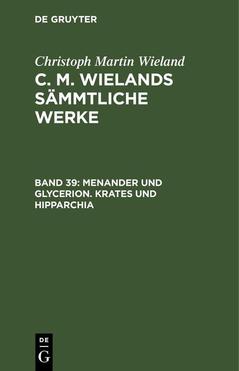 Christoph Martin Wieland: Menander und Glycerion. Krates und Hipparchia, Gebunden