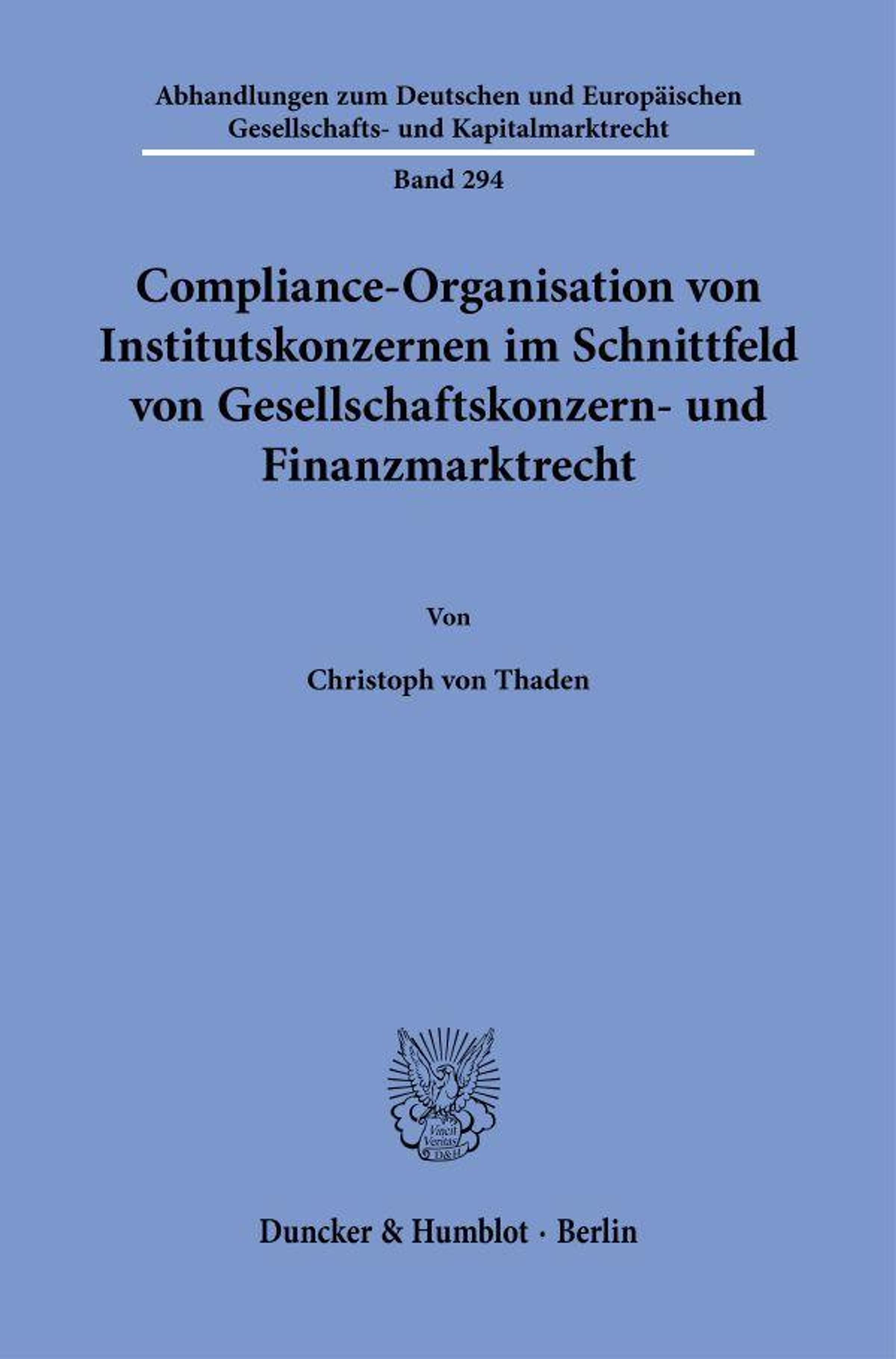 Der Artikel Christoph von Thaden: Compliance-Organisation von Institutskonzernen im Schnittfeld von Gesellschaftskonzern- und Finanzmarktrecht wurde in den Warenkorb gelegt.