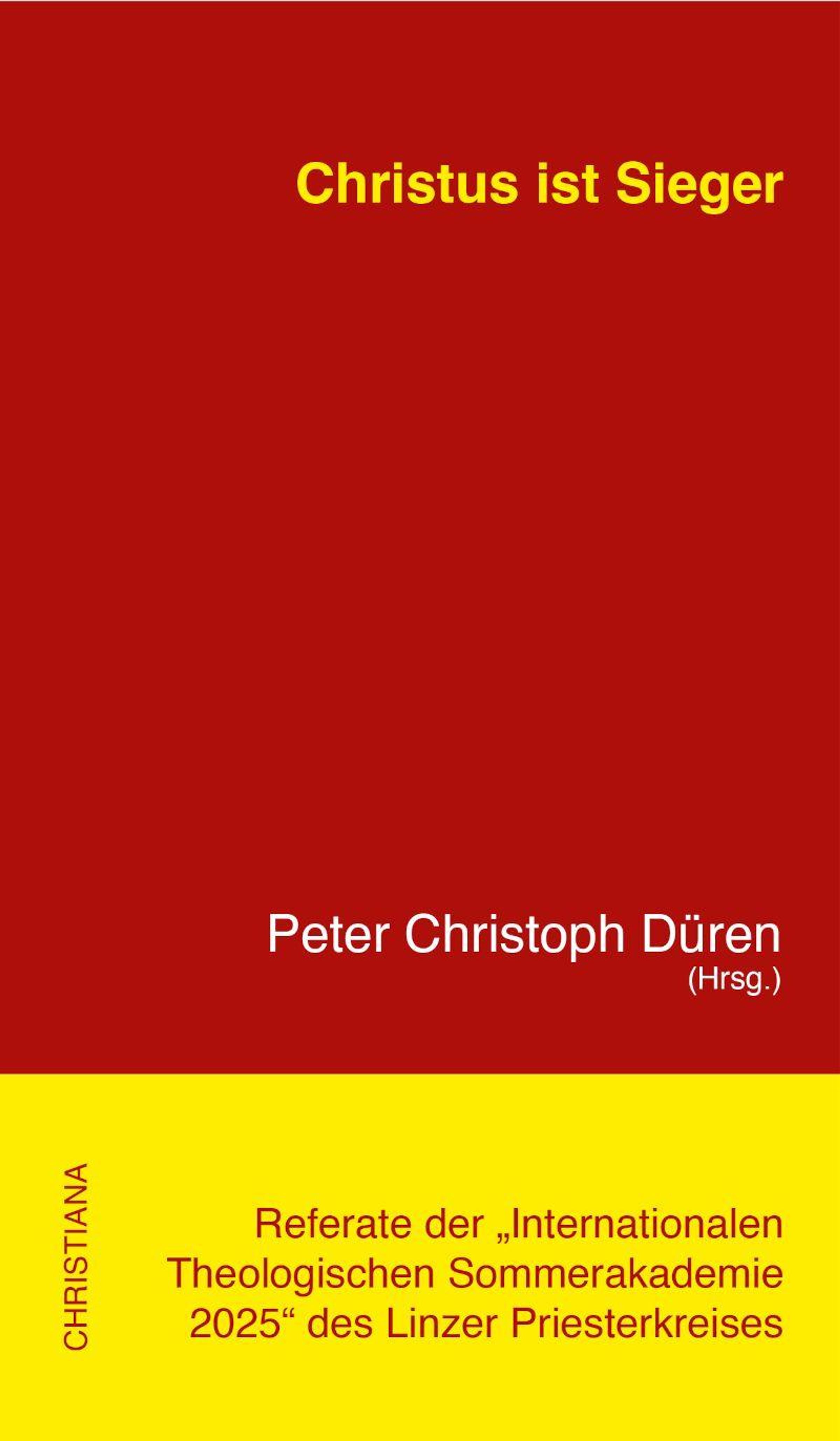 "Christus ist Sieger" in Gelb auf Rot, Herausgeber: Peter Christoph Düren. Thema: Theologische Sommerakademie 2025., Buch