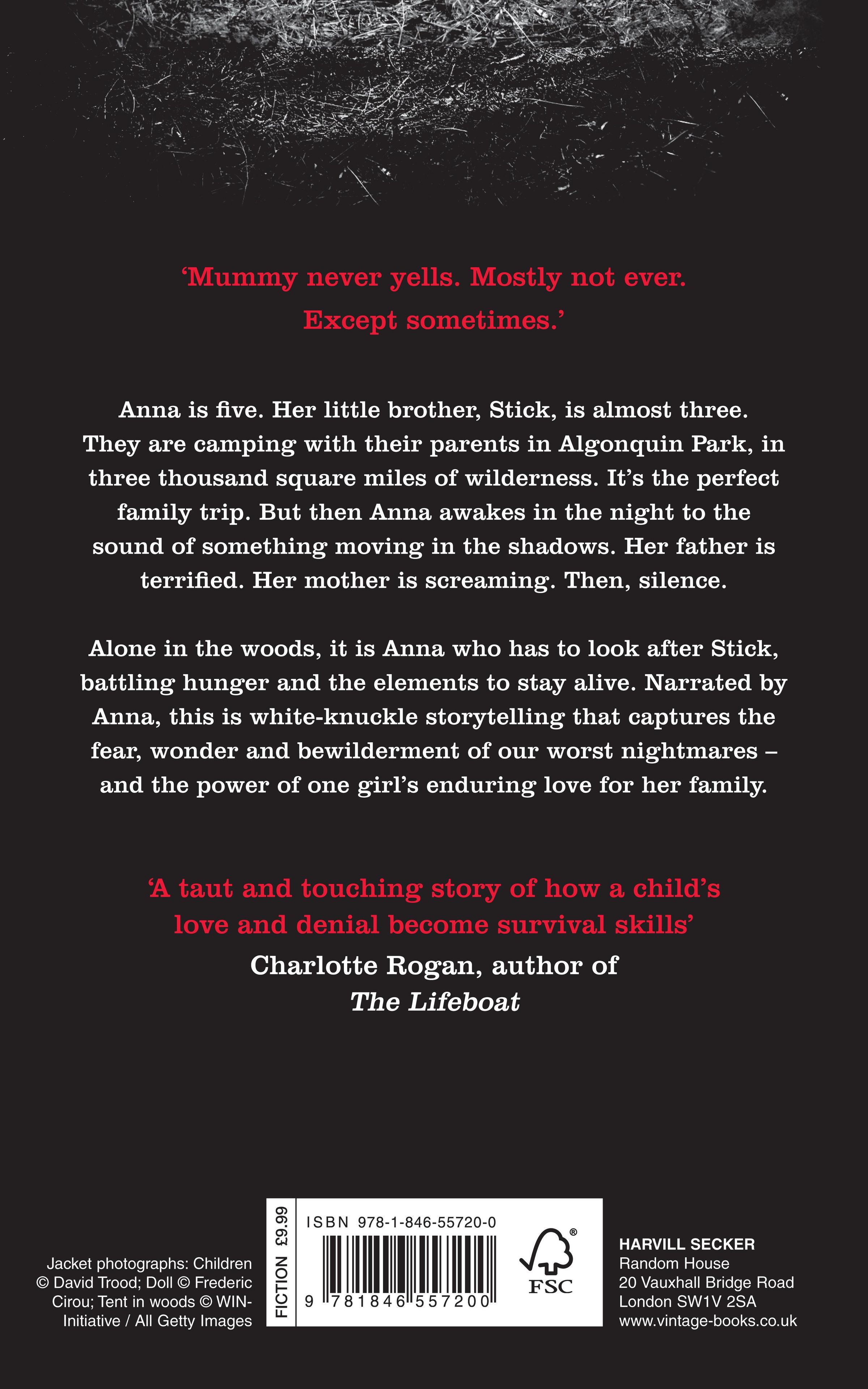 Anna is five. Her little brother Stick is almost three. They are camping with their parents in Algonquin Park in three thousand square miles of wilderness. It's the perfect family trip. But then Anna awakes in the night to the sound of something moving in the shadows. Her father is terrified. Her mother is screaming. Then silence.