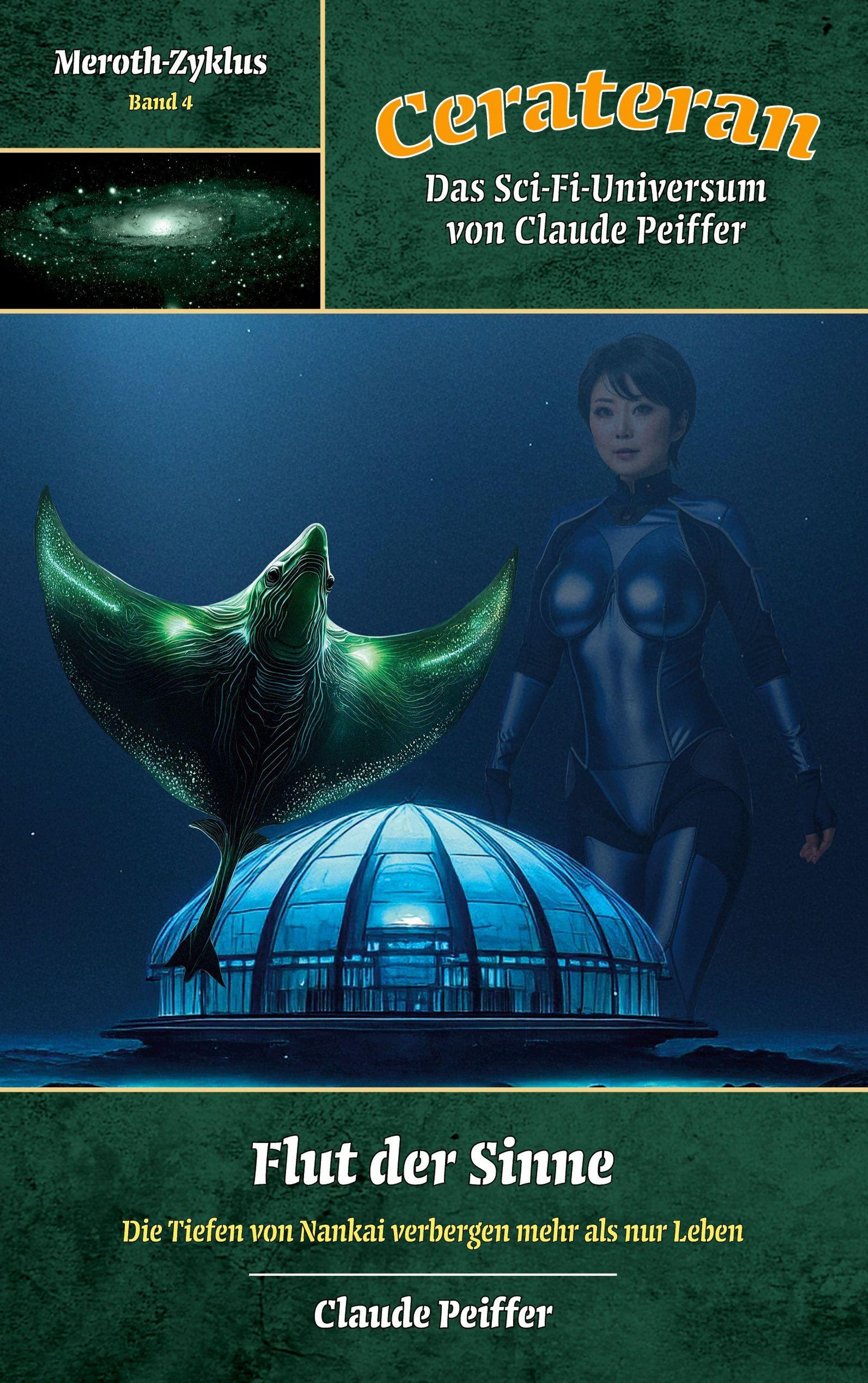Mai 34 DNW (Der Neuen Weltordnung)! Während die Mächtigen der Republik Terra auf Erde, Mond und ihrer ersten Kolonie Nikong weiterhin ihre gefährlichen Spielchen um Macht und Einfluss betreiben, rückt die Erforschung eines rätselhaften Ozeanplaneten in den Mittelpunkt, fremdartig, überwältigend und bevölkert von Leben jenseits aller menschlichen Vorstellungskraft. Im Zentrum des Geschehens stehen erneut die Familie Meroth, Kadochi Hiromi und der unbeirrbare Captain Matt Stoma mit seinem Frachter, der Hatahata. Unterstützung erhalten sie diesmal von der brillanten Professorin Hamasaki Mariko und ihrer Schwester Nanami, beide ausgewiesene Expertinnen für aquanautische Wissenschaften. Doch nicht nur die Handlung gewinnt sprichwörtlich an Tiefe: Auch das Cerateran-Universum entfaltet sich weiter mit fantastischen neuen Erkenntnissen über die Struktur der bisher bekannten Realität, die alles verändern könnten und selbst den sagorischen Botschafter-Roboter Veegun in Aufregung versetzten. Im vierten Roman des Meroth-Zyklus erleben wir eine wahre Flut der Sinne, und zwar nicht nur auf der Erde, sondern auch tief im Ozean einer fremden Wasserwelt.