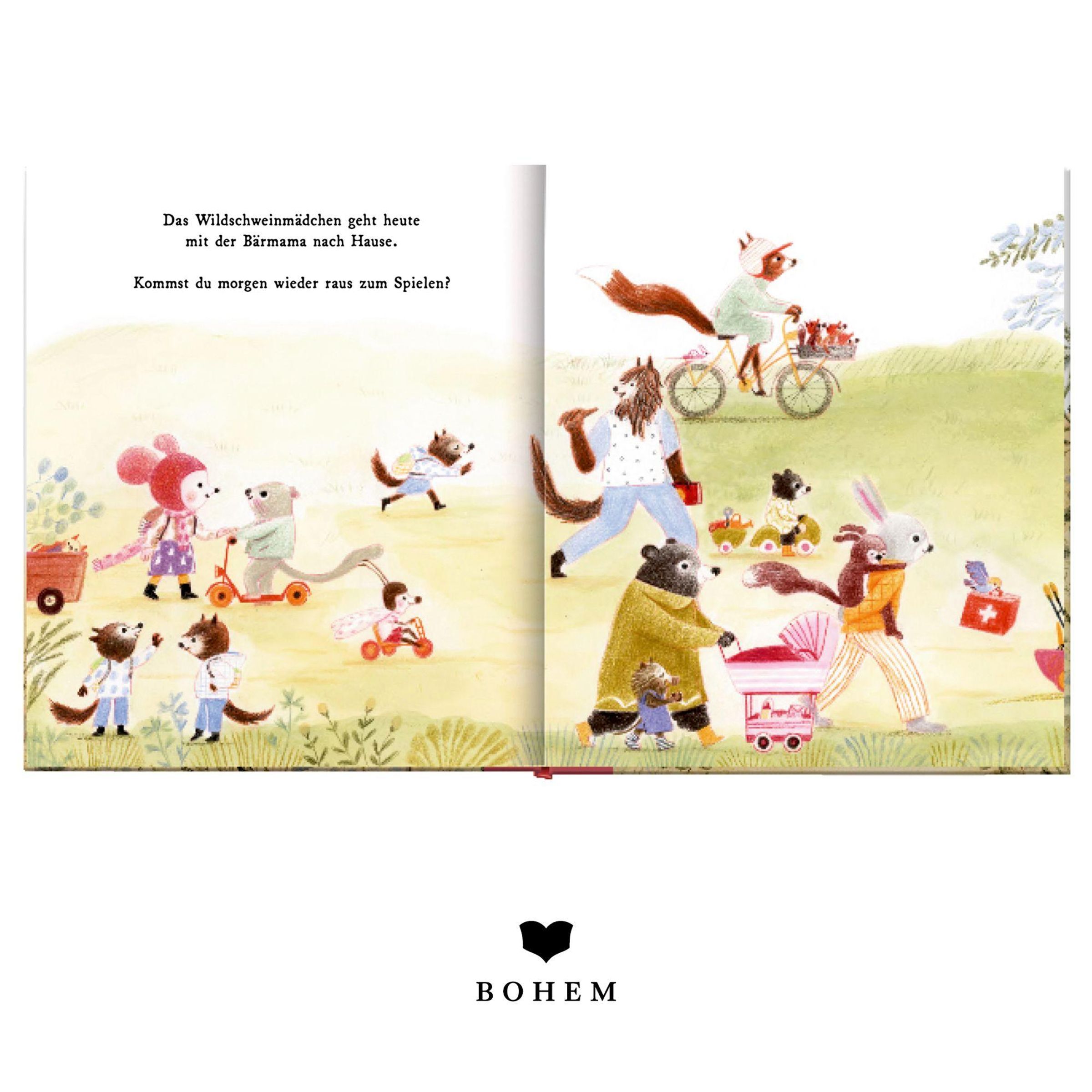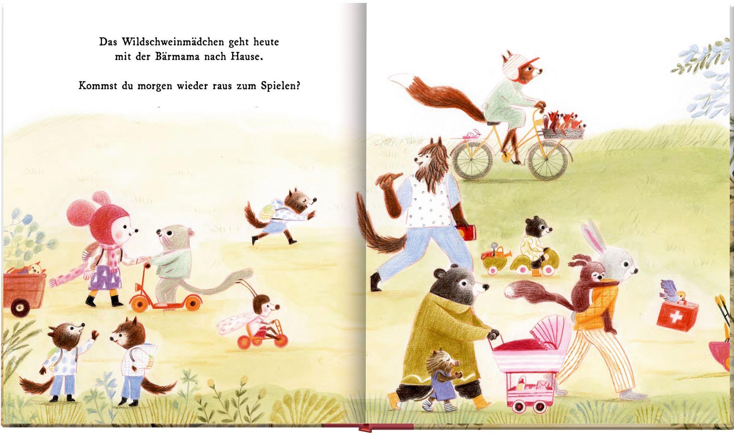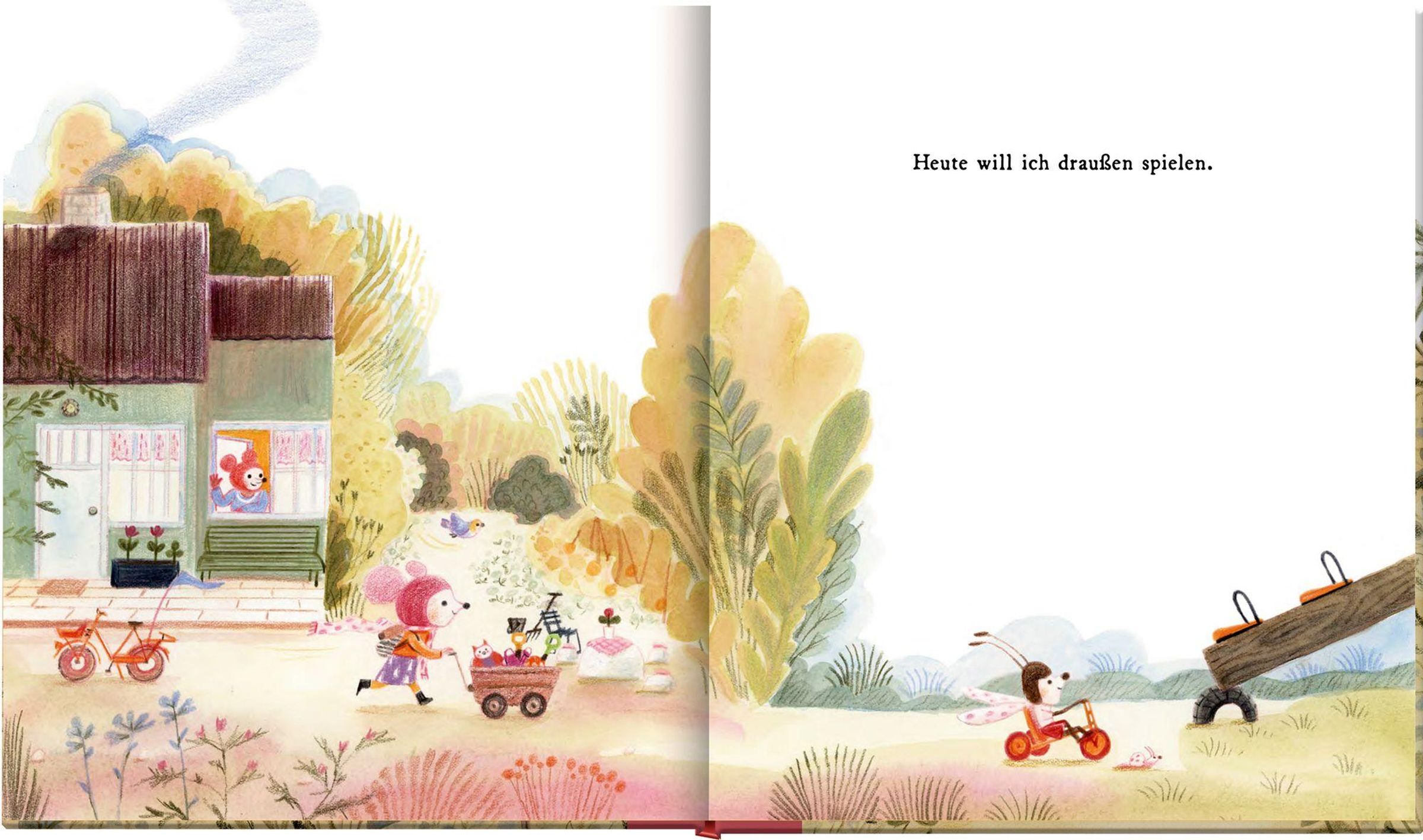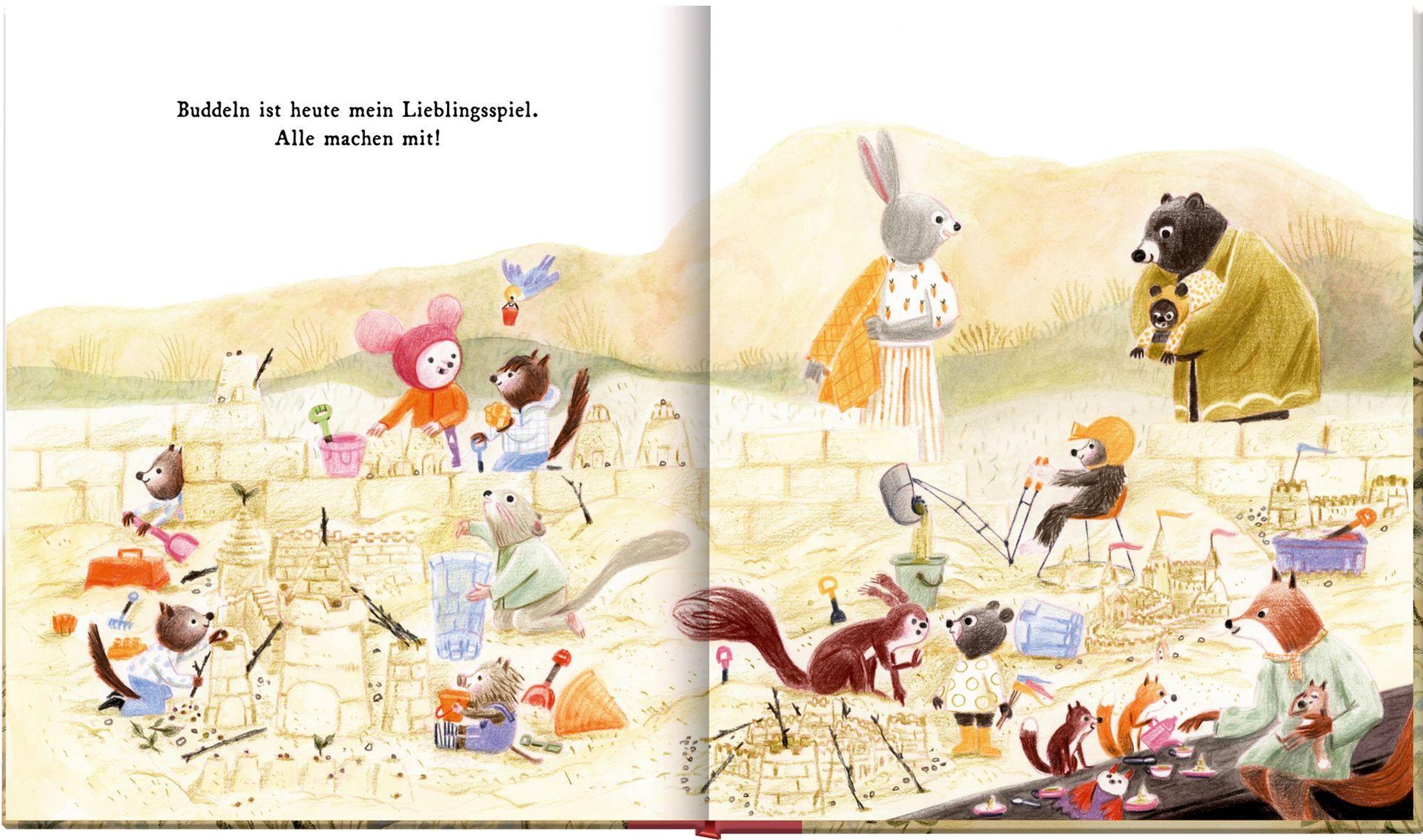 Sie liebt es, zu rutschen und ganz hoch oben auf die Spitze des Klettergerüsts zu steigen. Manchmal muss man warten, bis eine Schaukel frei wird, aber buddeln geht super gemeinsam! Alle zusammen bauen Sandburgen - kreuz und quer über den Spielplatz. Als es Zeit wird, nach Hause zu gehen, hat Sausimausi einen neuen Freund gefunden.