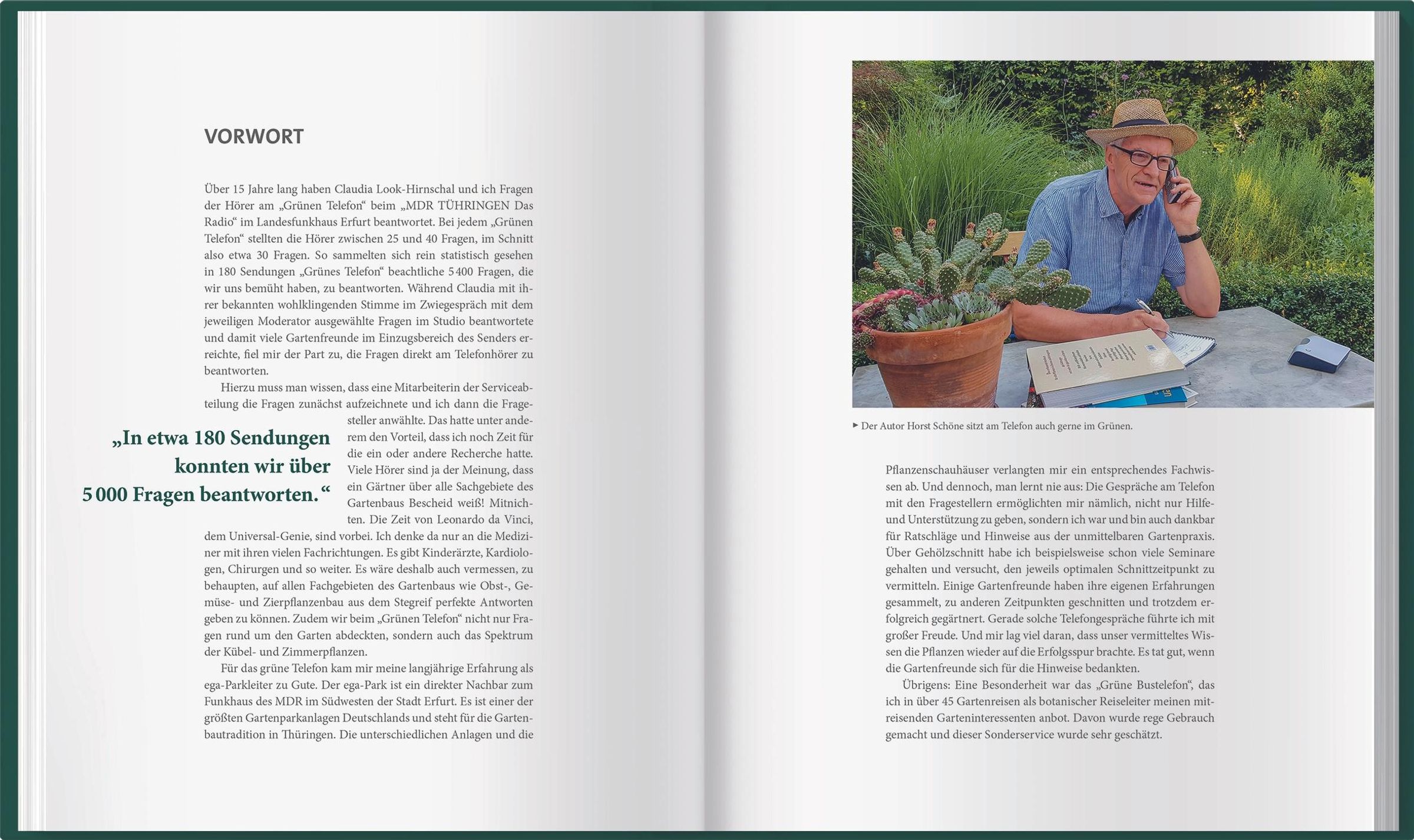 Bei Anruf: Hilfe für den grünen Daumen Ob Kampf gegen Giersch, das Schneiden der Hamamelis oder die Gladiole, die einfach nicht blühen will - wer schnelle und kompetente Hilfe brauchte, rief samstags bei der erfolgreichen Radiosendung "Das grüne Telefon" des MDR Thüringen an. Der langjährige Parkleiter des egaparks in Erfurt, Horst Schöne, und die beliebte Radiomoderatorin Claudia Look-Hirnschal halfen den Zuhörern mit Expertise, Herz und Humor. Nun gibt es endlich "Das grüne Telefon" als Nachschlagewerk zu Garten, Balkon und Zimmerpflanzen: . Aus dem Radio ins Buch: "Das grüne Telefon", die beliebte Sendung des MDR Thüringen, als Gartenratgeber . Über 200 Antworten auf die wichtigsten und am häufigsten gestellten Fragen aus weit über 5000 Radiotelefonaten . Für drinnen und draußen: ob Zimmerpflanze, Zwiebelgewächs, Staude oder Baum - die kompetenten Ratschläge der beiden Gartenexperten helfen weiter . Das Gartenjahr im Blick: alle Gartenprobleme sind nach Monaten geordnet . Eine Hommage und Erinnerung an die beliebte und zu früh verstorbene Moderatorin . Das Wissen der MDR Garten Experten: ein wunderbares Geschenk für Garten-Einsteiger und erfahrene Hobby-Gärtner
