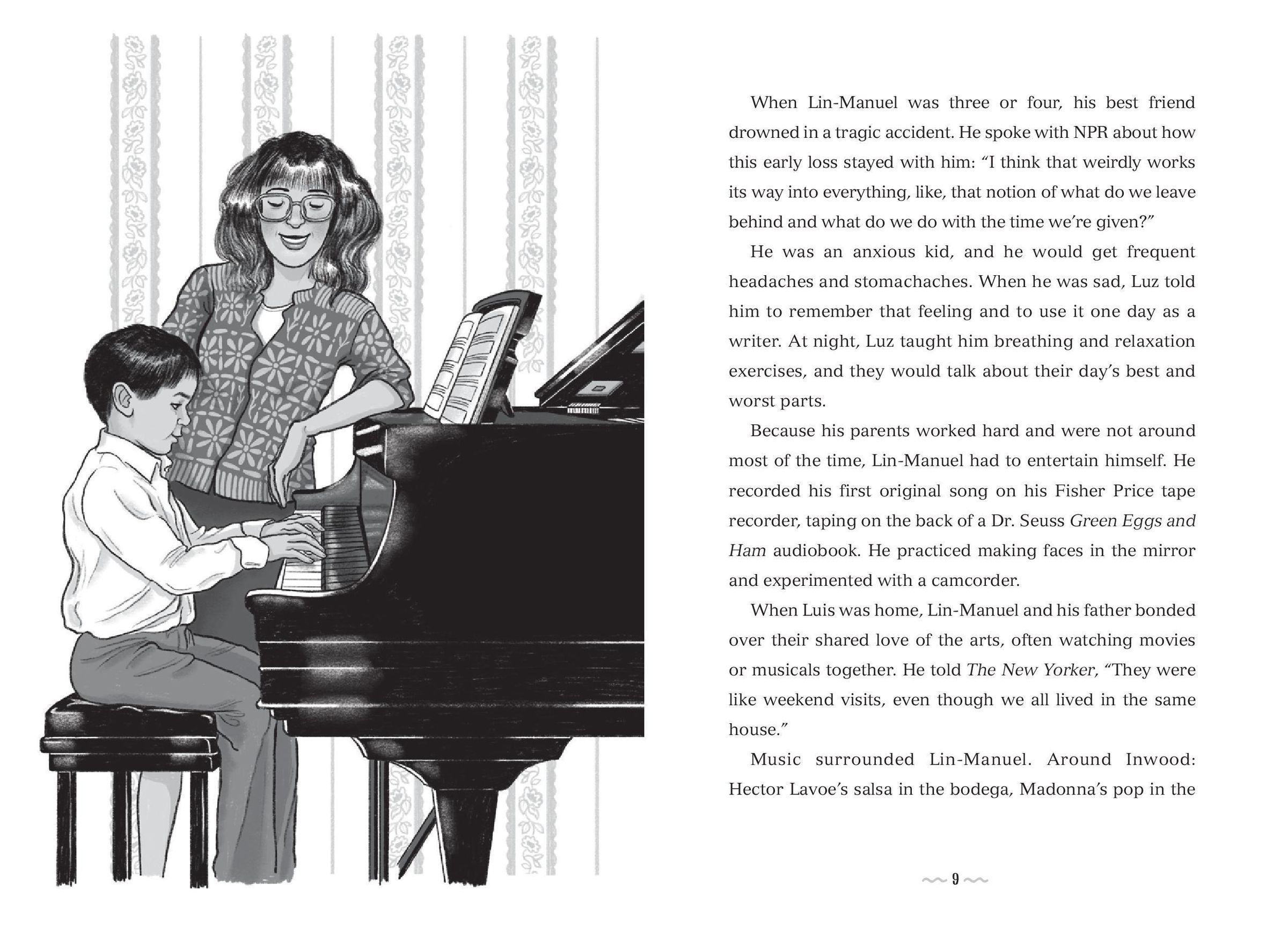 Meet award-winning songwriter, actor, producer and director, Lin-Manuel Miranda-once just a kid from New York City who loved growing up in Manhattan and spending summers visiting his family in Vega Alta, Puerto Rico. Fueled by his love of music and theater, Lin-Manuel Miranda would eventually become a household name, best known as the creator of Hamilton andIn the Heights , and as the lyricist and composer for Disney's Moana and Encanto .