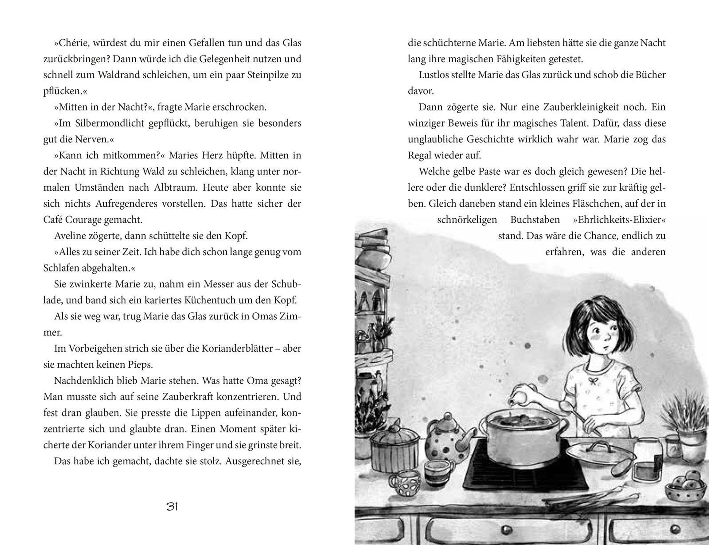 Doch dann weiht Maries Oma Aveline sie in ein Geheimnis ein: Mit den richtigen magischen Zutaten kann Marie Gerichte kochen, die Menschenverzaubern . Marie ist elektrisiert: Vielleicht hilft ja ein bisschen Zauberei bei ihren Startschwierigkeiten? Doch ihr erstes Koch-Experiment geht total schief, und plötzlich ist der Job ihrer Mutter in Gefahr ! Das muss Marie unbedingt wieder gutmachen - am besten mit einem extra feinen, magischen Buffet beim großen Schulfest ...
