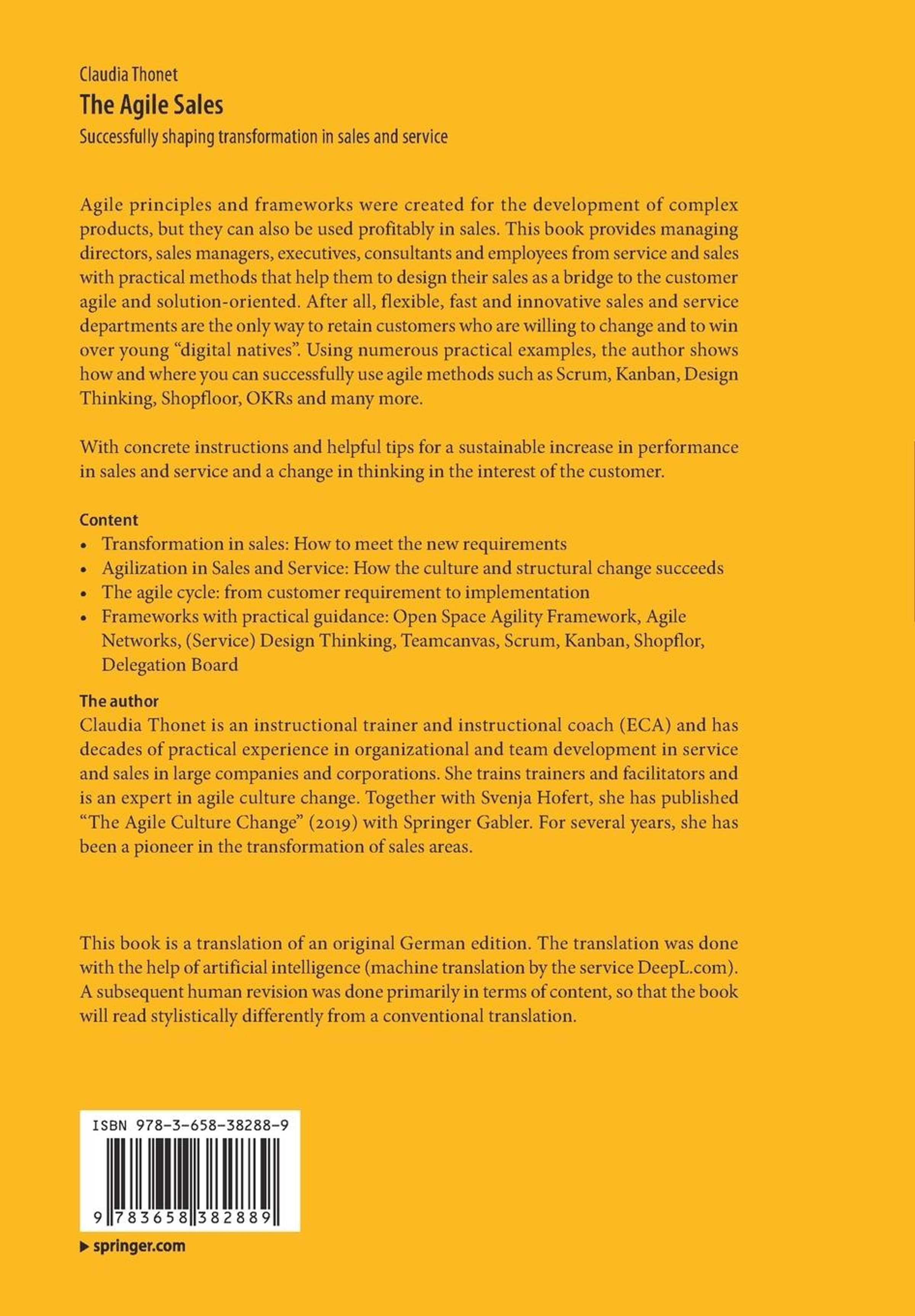 The demands on companies are changing rapidly due to digitalization. Today's customers want to be served conveniently, directly, solution-oriented and accommodating at all times on all communication channels. Only flexible, fast and innovative sales and service departments will keep the customers willing to change and also get the young "digital natives" on board. This book is about practical agile working principles and methods, with the help of which you can make your sales department more innovative and agile as a bridge to the customer. On the basis of agile leadership and team principles, you will be provided with custom-fit structures and frameworks to increase the agility of sales teams. How do you successfully implement agile frameworks and methods such as Kanban, Design Thinking, Shopfloor and OKRs in which sales area? Which prerequisites must be created for this? The basis for change is the common understanding and mindset of the decision-makers. The book offers thought models and numerous tips for action. A decisive factor is the strengthening of self-organization and assumption of responsibility through a different understanding of the role of management. Building on this, the book describes practicable agile structures and methods for developing sales and service teams in the direction of transformation and innovation capability. Target group are managing directors, sales managers, executives, consultants and employees from the areas of service and sales.