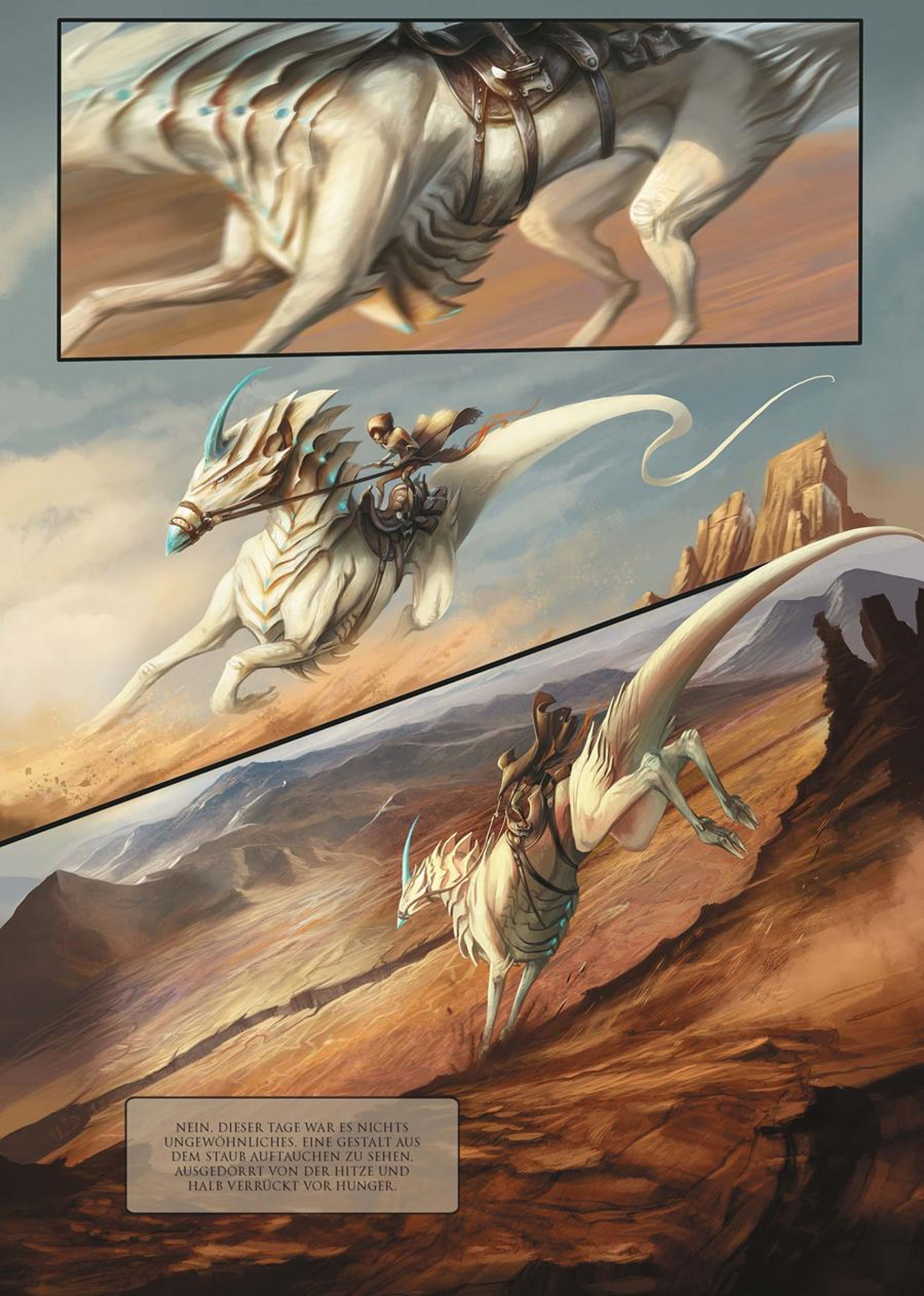 Die harsche Welt von Yria ist voller Geheimnisse. Es gibt Anzeichen, dass Yria nicht immer die zerklüftete Wüste war, die sie heute ist, aber kaum einer ihrer tierähnlichen Bewohner kann sich an diese Vorzeit erinnern. Die Wanderin Myre interessiert sich nicht für Sagen und Geschichten. Begleitet von ihrem Drachen Varug lebt sie von einem Tag zum nächsten, immer auf der Suche nach der nächsten Mahlzeit und dem nächsten Schlafplatz. Aber seinem Schicksal kann man nun mal nicht entkommen, und so befindet sich Myre ehe sie sich versieht auf einer Reise, in deren Verlauf sie in die tiefsten Mysterien Yrias eintauchen wird.