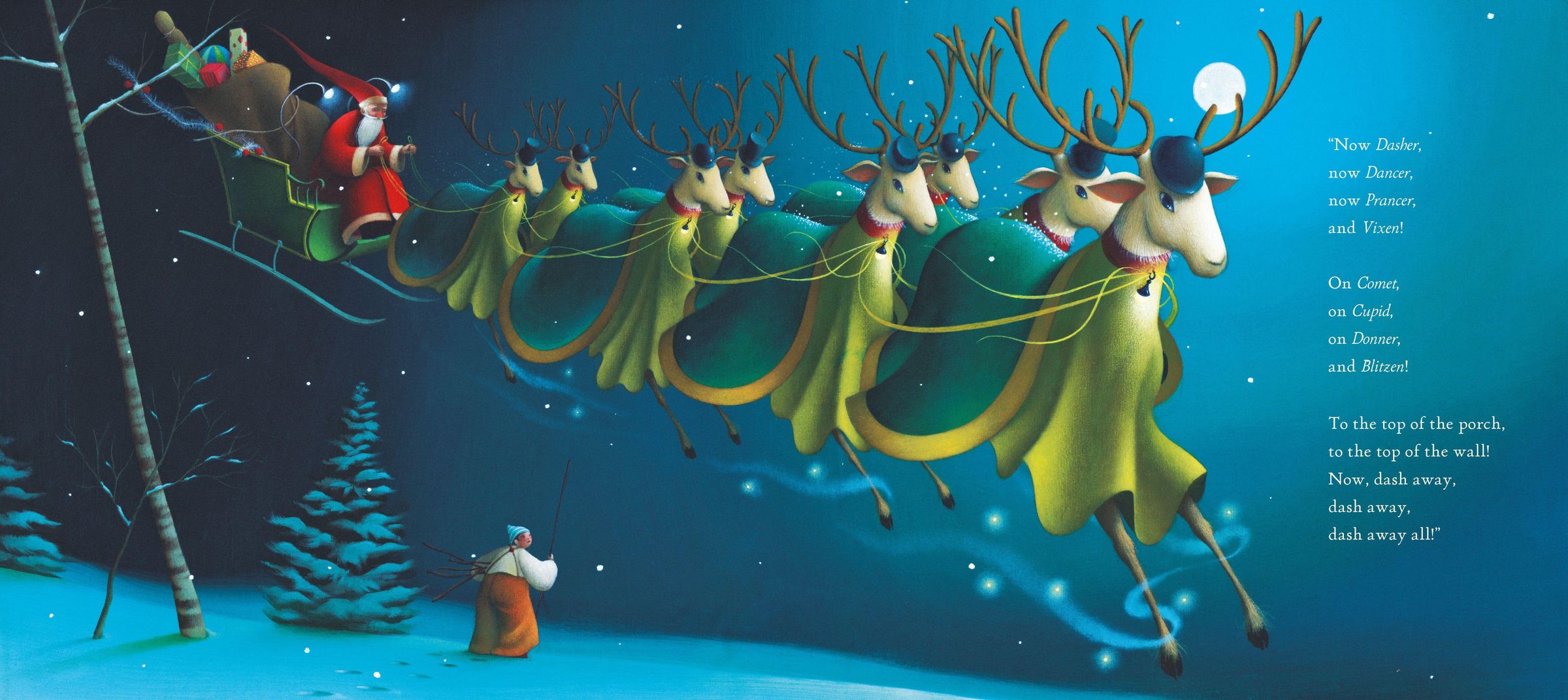 "Now Dasher, now Dancer, now Prancer, and Vixen! On Comet, on Cupid, on Donner, and Blitzen!"