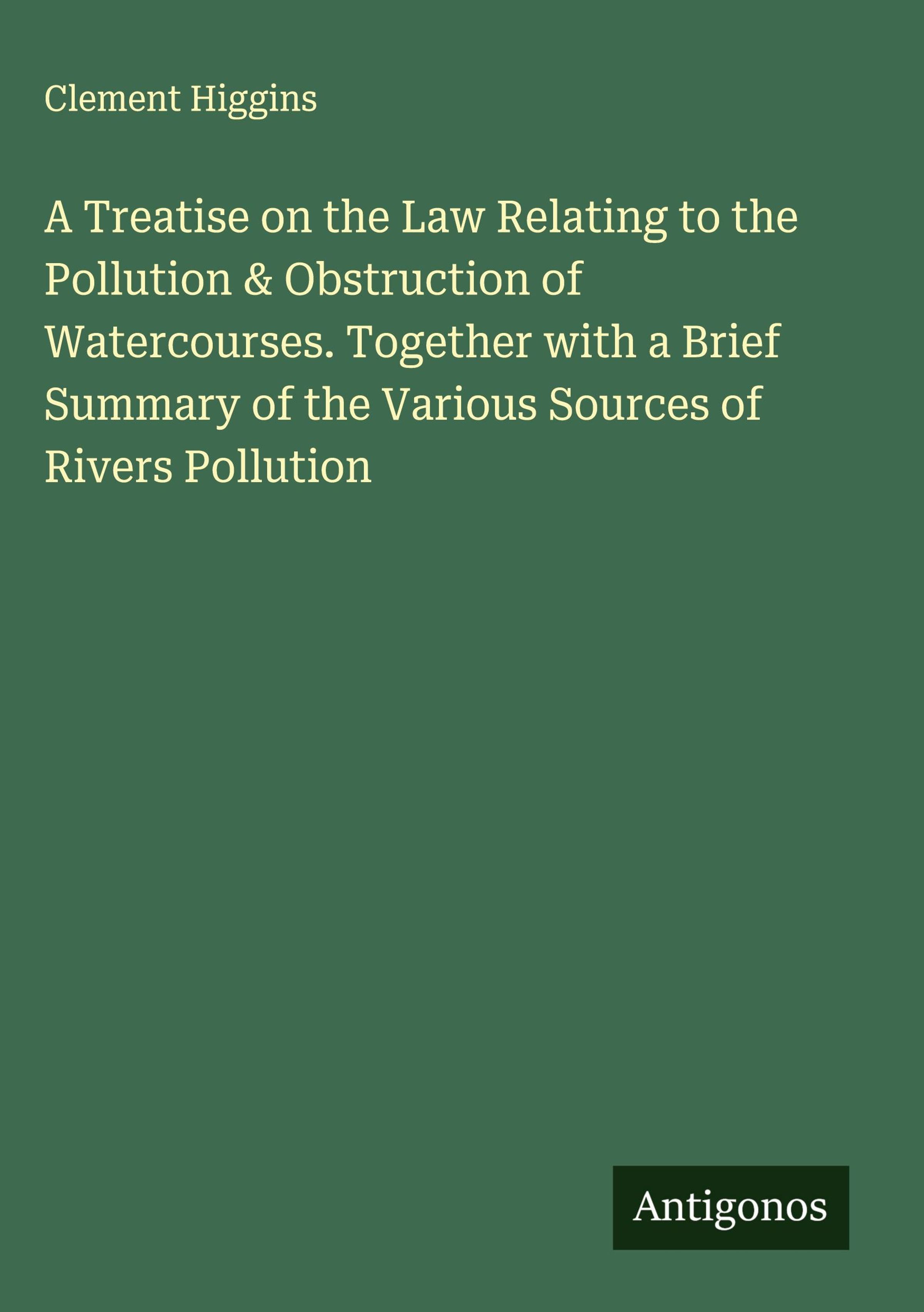Clement Higgins: A Treatise on the Law Relating to the Pollution & Obstruction of Watercourses. Together with a..., Gebunden