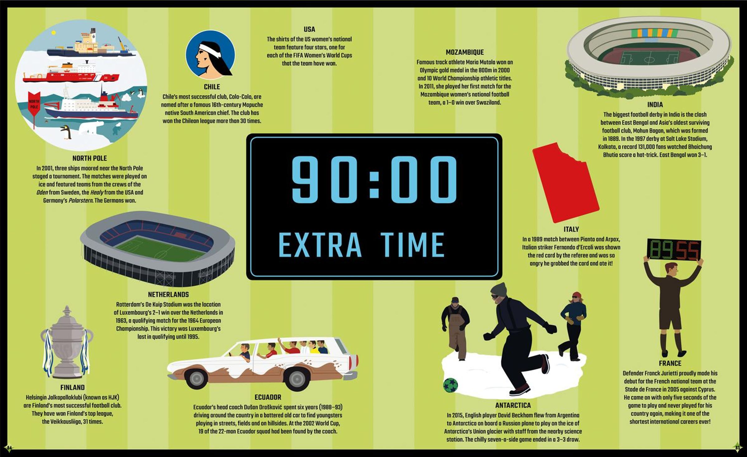This fully illustrated book of trivia takes footie fans on a breathtaking round-the-world tour, visiting every continent to discover incredible football stories, from record-breaking goals, amazing players, and stunning stadiums to weird and wonderful football mascots.