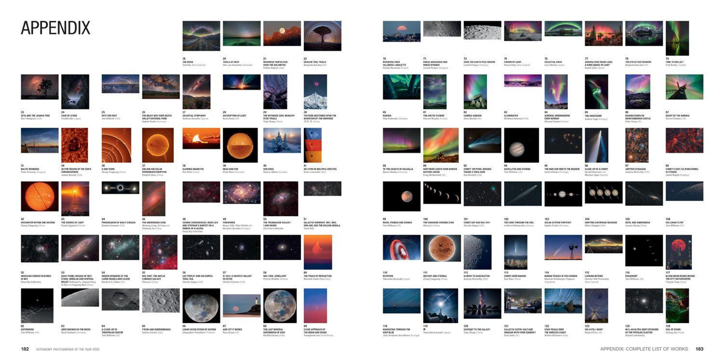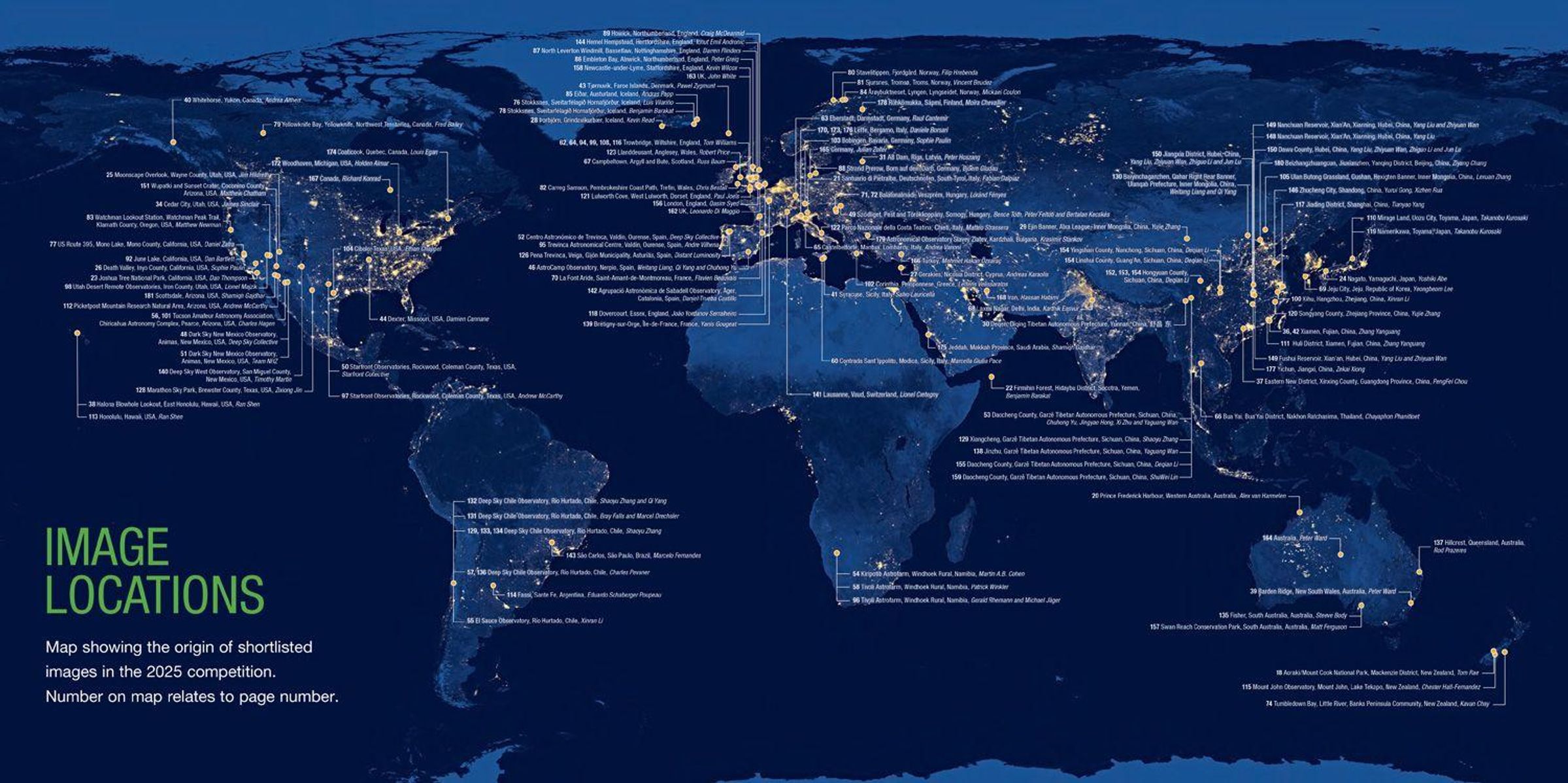 Be captivated by 140 winning and shortlisted images from the 2025 Astronomy Photographer of the Year competition, hosted by the Royal Observatory, Greenwich. These awe-inspiring images are submitted in nine main categories: Aurorae , Galaxies , Stars and Nebulae including stars, star clusters and supernova remnants, Our Moon and Our Sun, People and Space. Plus The Sir Patrick Moore Prize for Best Newcomer, the Annie Maunder Open Category and Young Competitor categories. Each image is accompanied by caption, photographer, location and technical details. There is also a location map showing the origin of all images and a visual appendix of all images.
