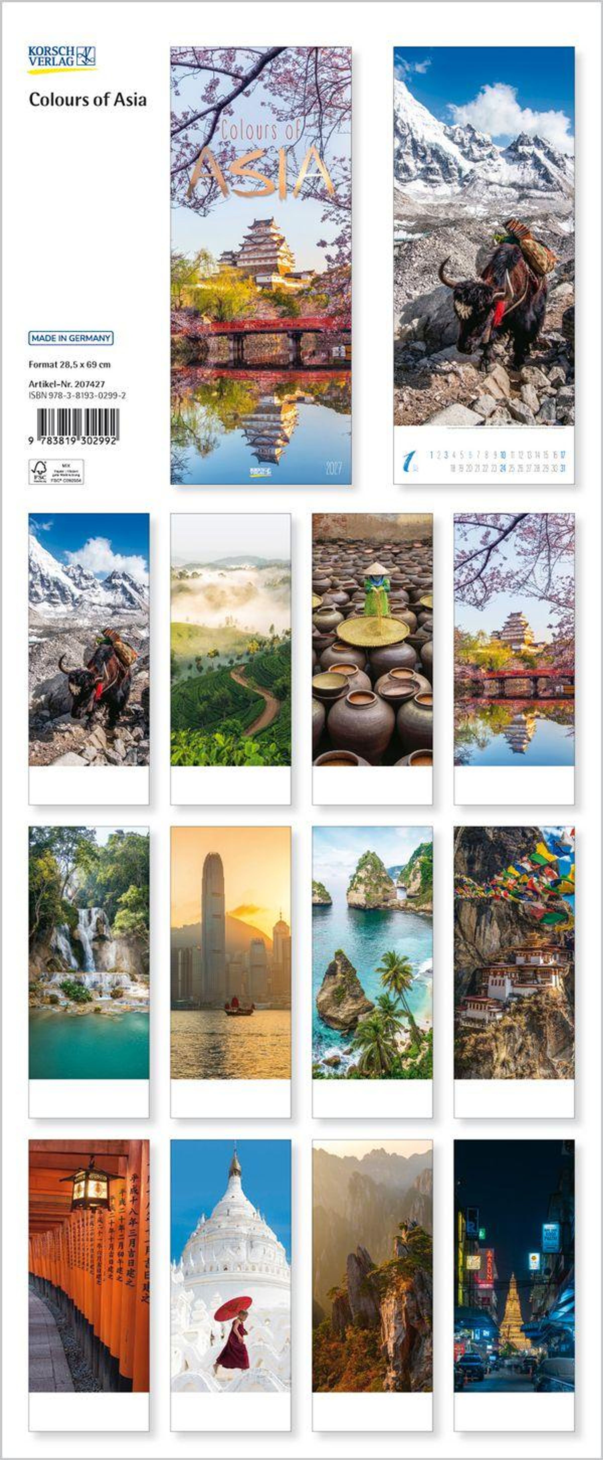 - Schmaler Wandkalender. Foto-Kunstkalender mit stimmungsvollen Fotografien rund um Asien. PhotoArt Vertikal. 28,5 x 69 cm.