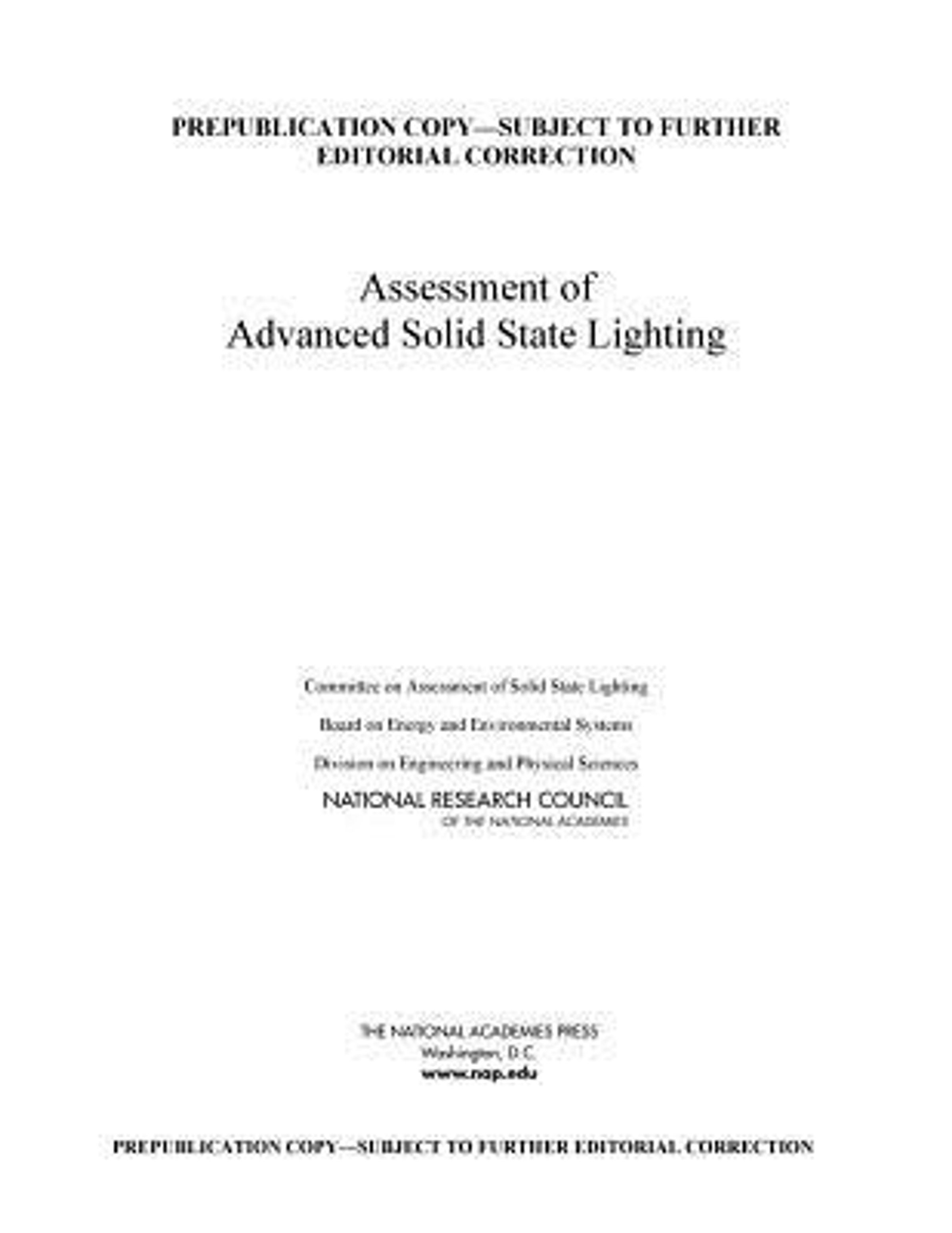 National Research Council, Division on Engineering and Physical Sciences, Board on Energy and Environmental Systems, Committee on Assessment of Solid-State Lighting