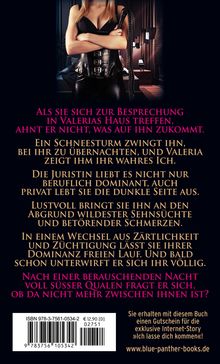 Als sie sich zur Besprechung in Valerias Haus treffen, ahnt er nicht, was auf ihn zukommt. Ein Schneesturm zwingt ihn, bei ihr zu übernachten, und Valeria zeigt ihm ihr wahres Ich. Die Juristin liebt es nicht nur beruflich dominant, auch privat lebt sie die dunkle Seite aus. Lustvoll bringt sie ihn an den Abgrund wildester Sehnsüchte und betörender Schmerzen. In einem Wechsel aus Zärtlichkeit und Züchtigung lässt sie ihrer Dominanz freien Lauf. Und bald schon unterwirft er sich ihr völlig. Nach einer berauschenden Nacht voll süßer Qualen fragt er sich, ob da nicht mehr zwischen ihnen ist?Diese Ausgabe ist vollständig, unzensiert und enthält keine gekürzten erotischen Szenen.