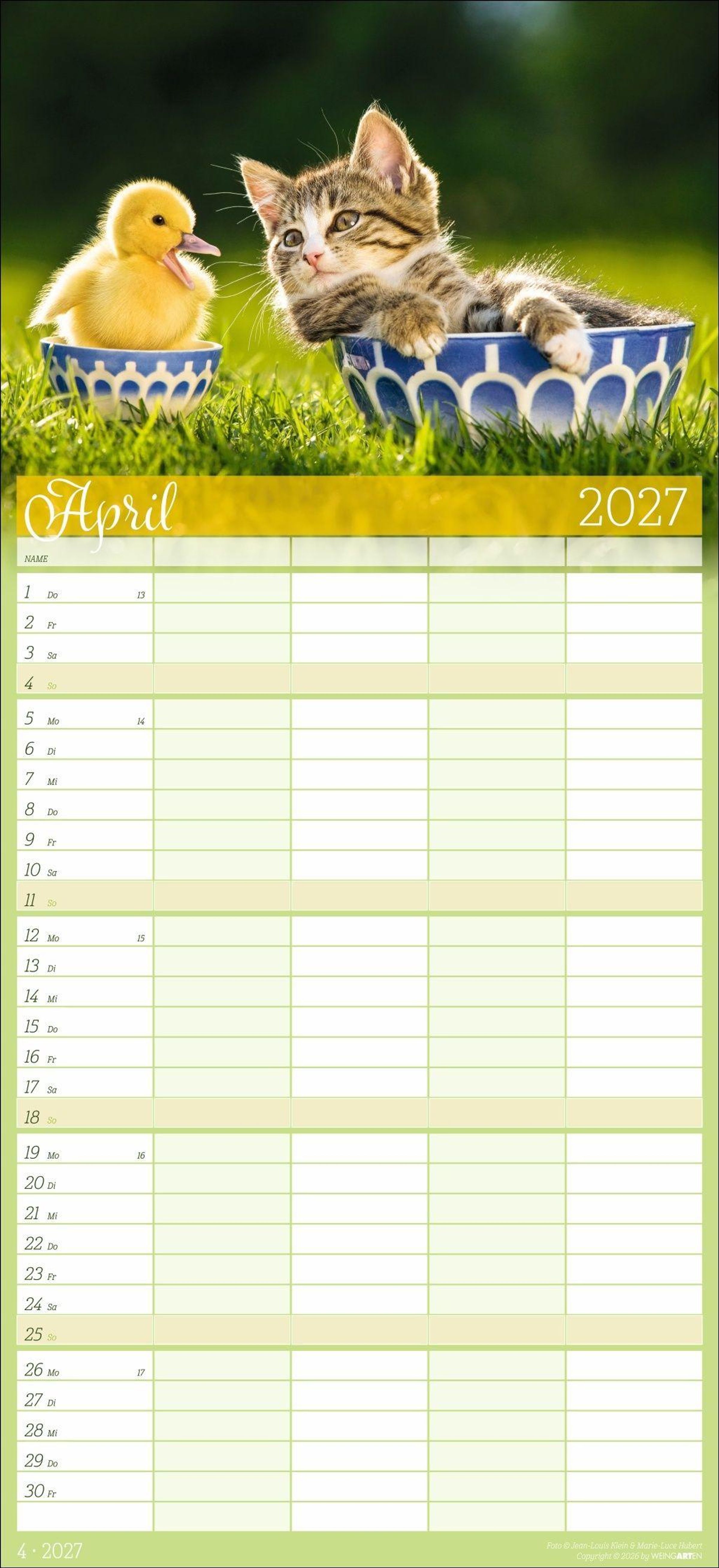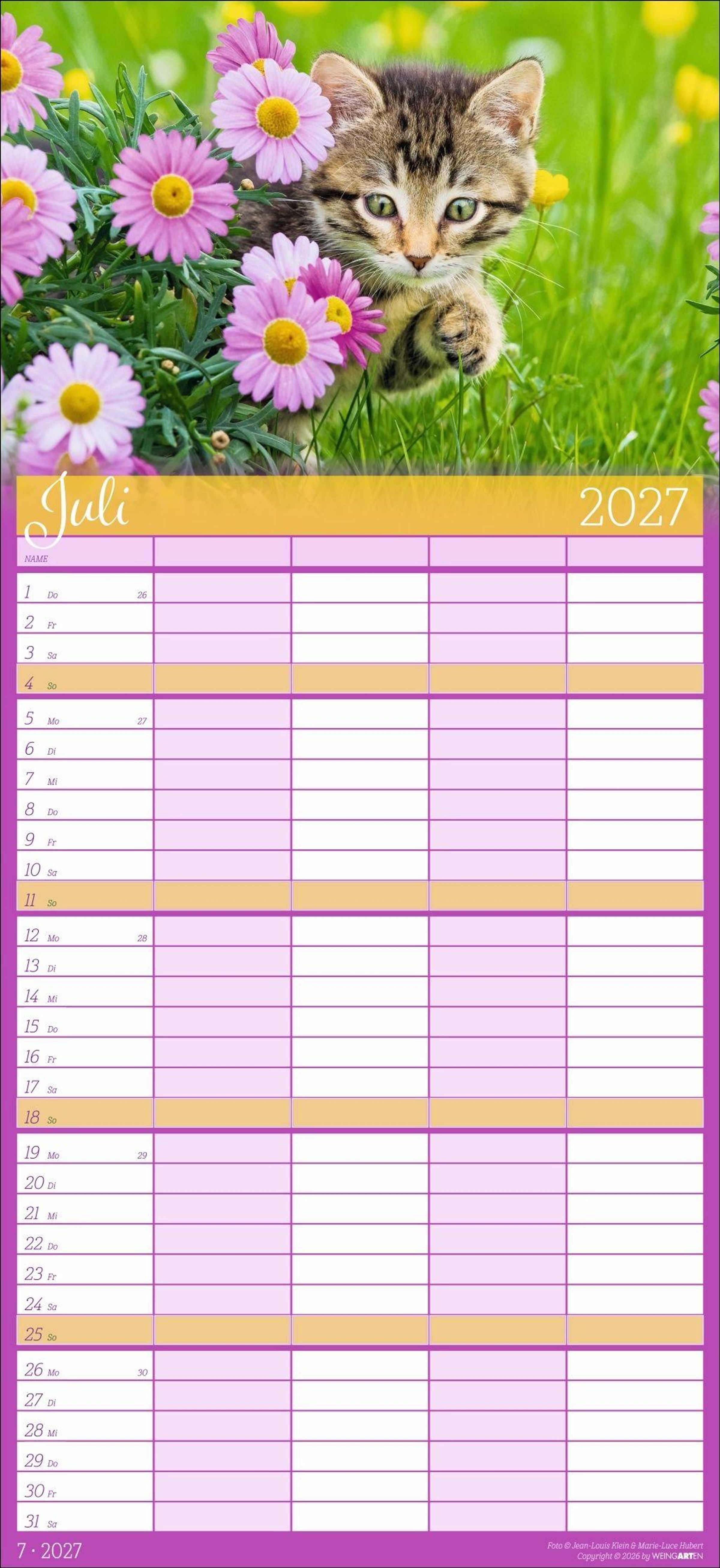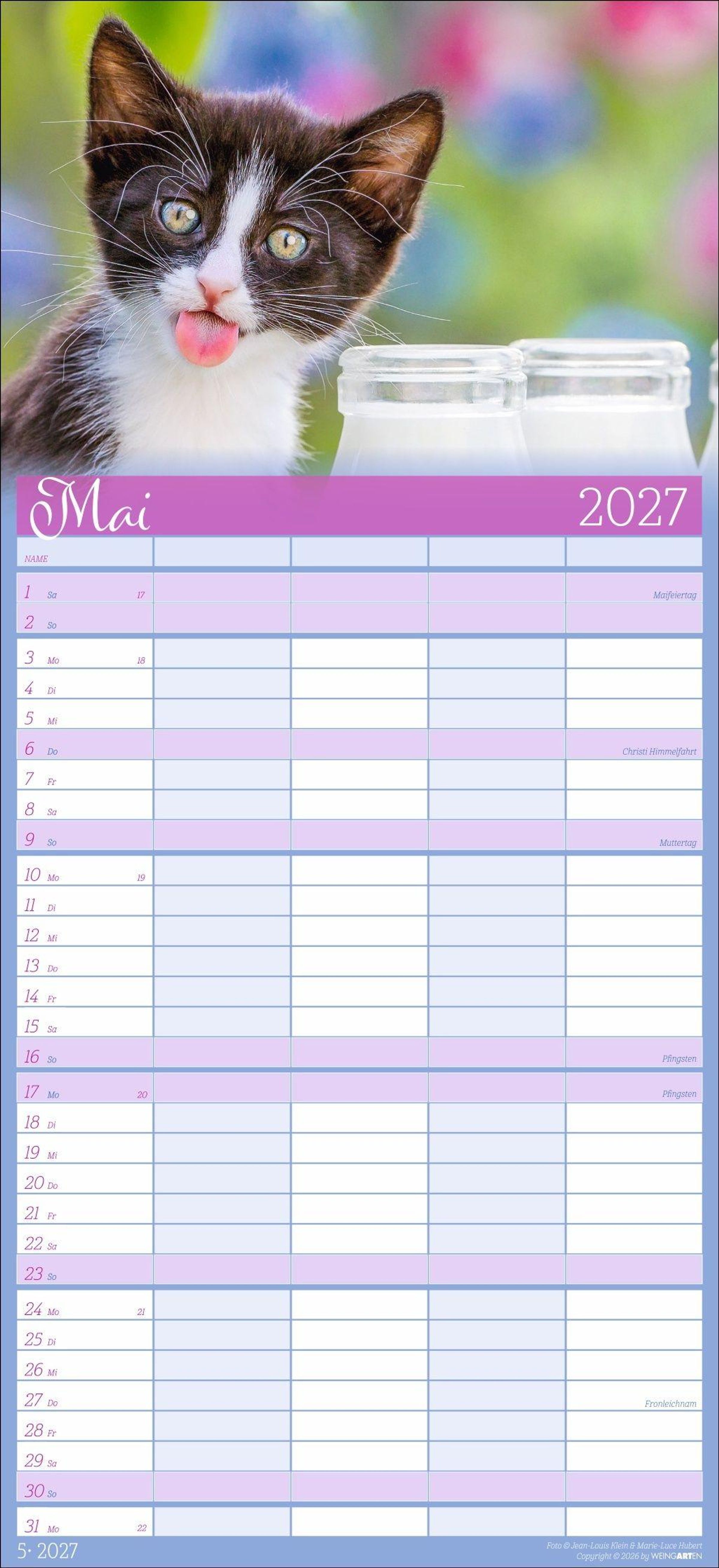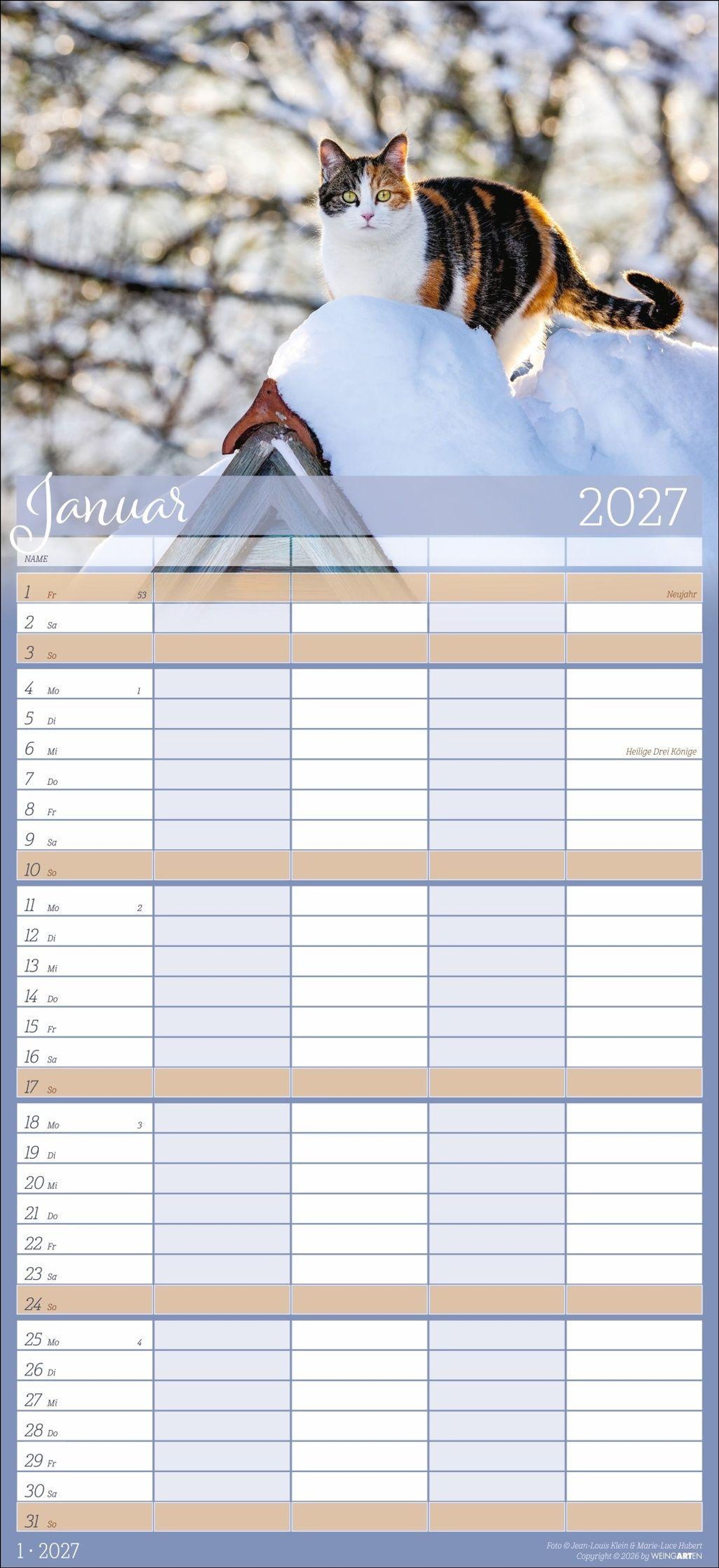 - Großer Foto-Terminkalender mit 5 Spalten für Familien. Schöner Familien-Wandkalender 2027 mit süßen Katzen-Fotos. 22 x 48 cm