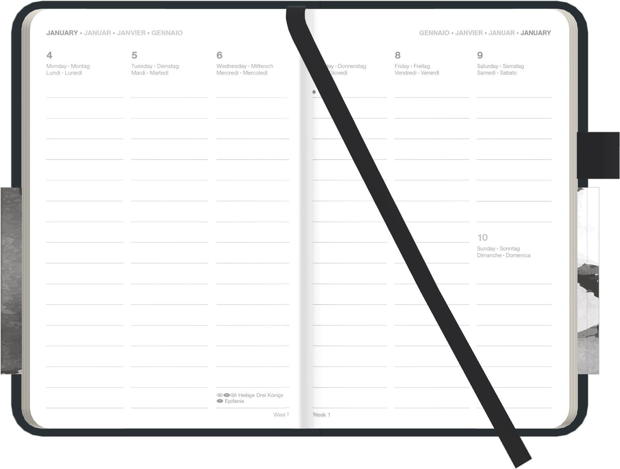 Übersichtliche Planung: Eine Woche auf einen Blick plus Jahres- & Monatsübersichten